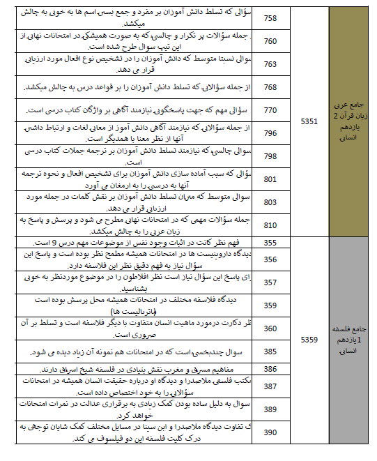 سؤالات متناسب با امتحانات مدارس مطابق برنامه آزمون 31 فروردین