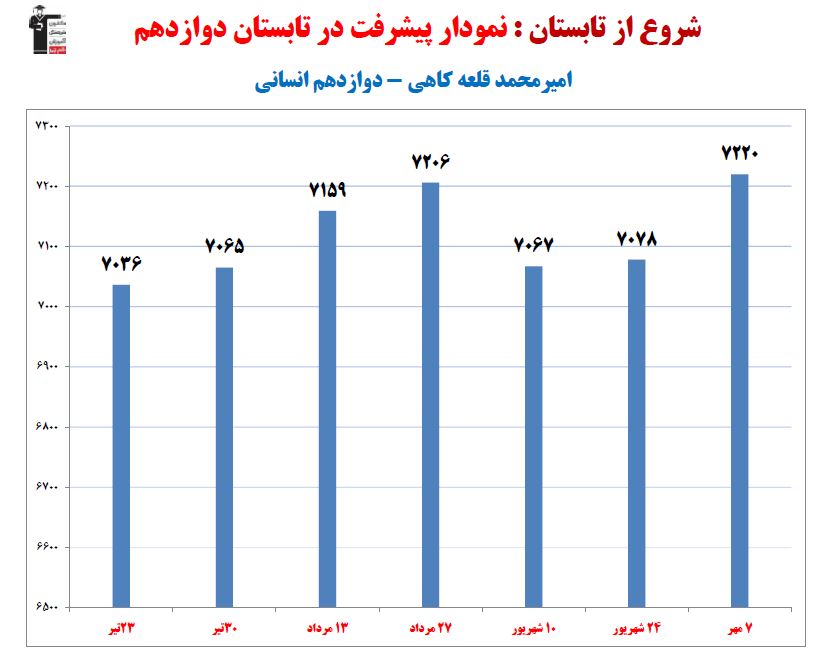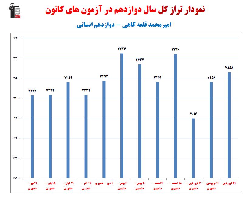 - اولین ترازم 7327 وآخرین 7600 وبالاترین ترازم 7700بوده است ودلیل اصلی موفقیتم آزمون و تست زمان دار انجام دادن، تحلیل درست ودقیق تست ها و آزمون ها ،مفهومی خواندن ،افزایش ساعات مطالعه و استمرار و صبر وتلاش وناامید نشدن نتیجه بخش است.