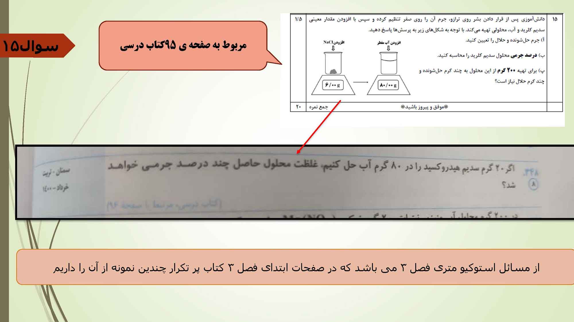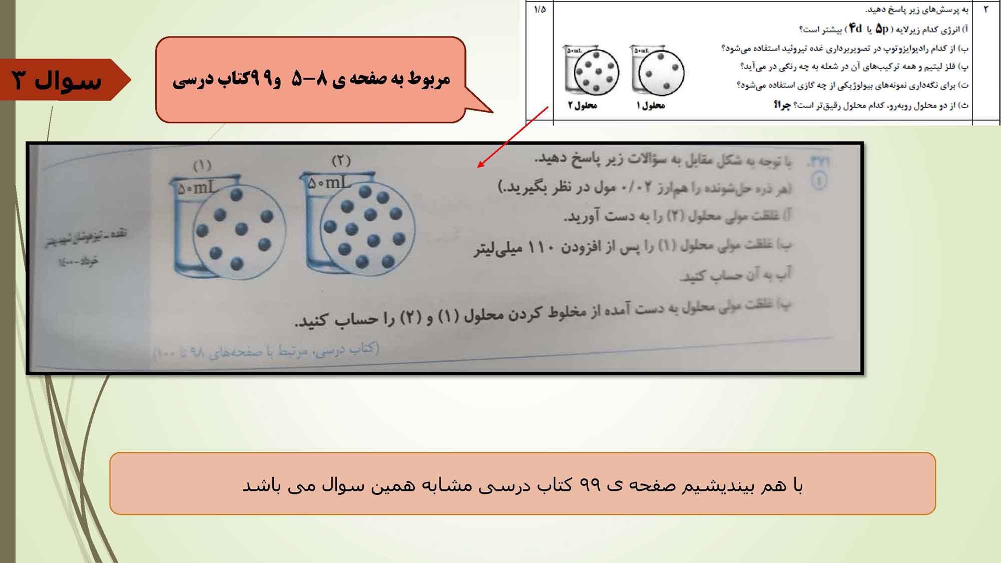 خانم مهناز قزی دبیر شیمی شهر سبزوار در استان خراسان رضوی، سؤالات امتحان شبه نهایی شیمی دهم را با کتاب پرتکرار شیمی دهم انطباق داده است و سؤالات مشابه مفهومی را مشخص کرده است.