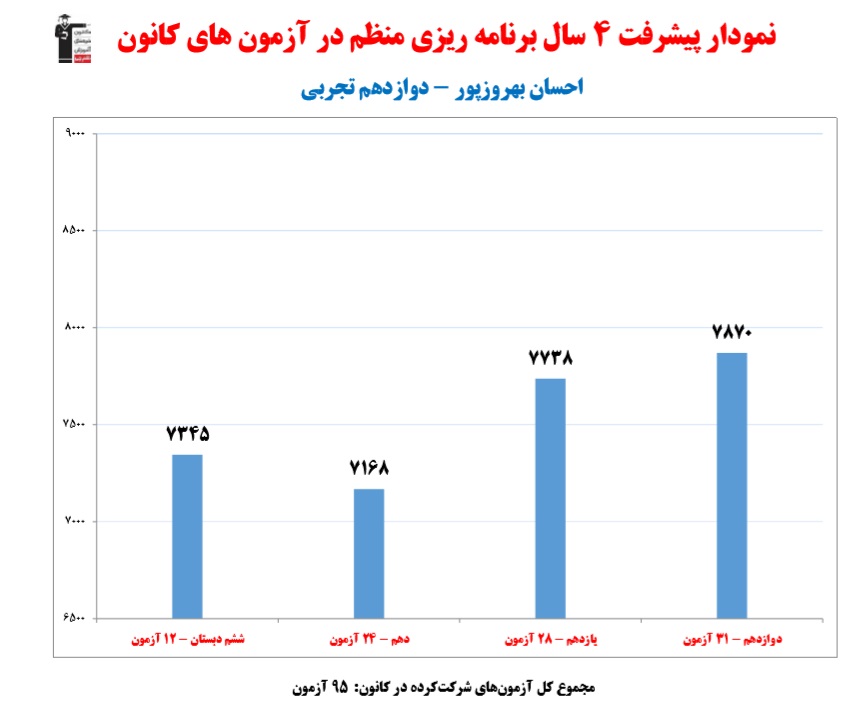 من ۳ سال کانونی پیوسته از مقطع دهم می باشم و در مقطع ششم نیز در آزمونهای کانون شرکت میکردم.