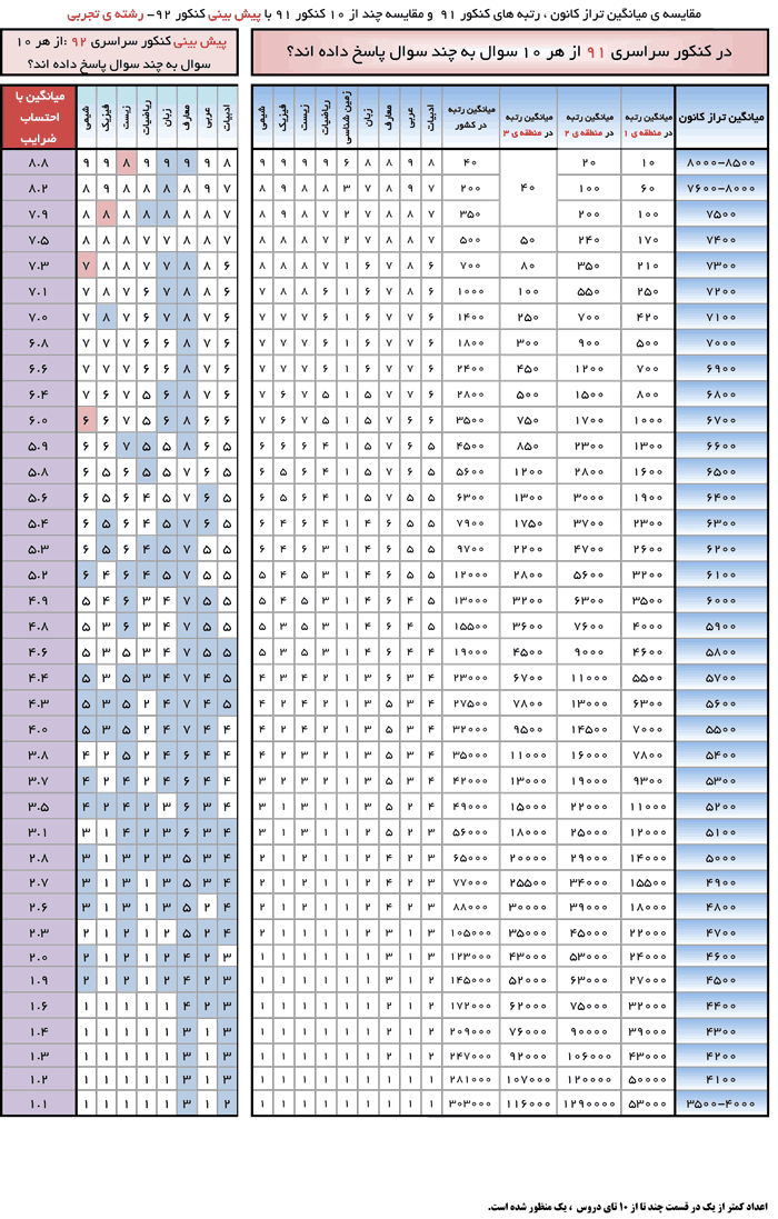 با اين جدول ها رتبه خود را در کنکور 92 تخمين بزنيد :