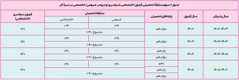 سهم هر کدام از این نمرات در نمره کل به شرح جدول زیر است