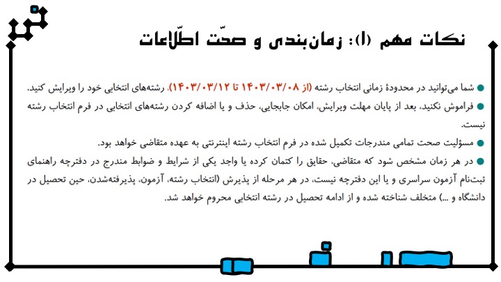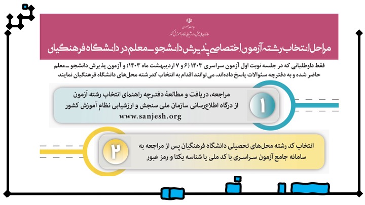 متقاضیان محترم دانشگاه فرهنگیان ـ روز پنجشنبه دهم خرداد، یک جلسهی رایگان مربوط به توضیحات انتخاب رشتهی کنکور فرهنگیان در نشانیهای زیر برگزار میشود: