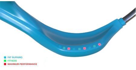 در قسمت بالایی این عینک صفحه نمایشگری وجود دارد که ضربان قلب، وضعیت تنفس و مقدار کالری سوزانده شده فرد را نشان می دهد.