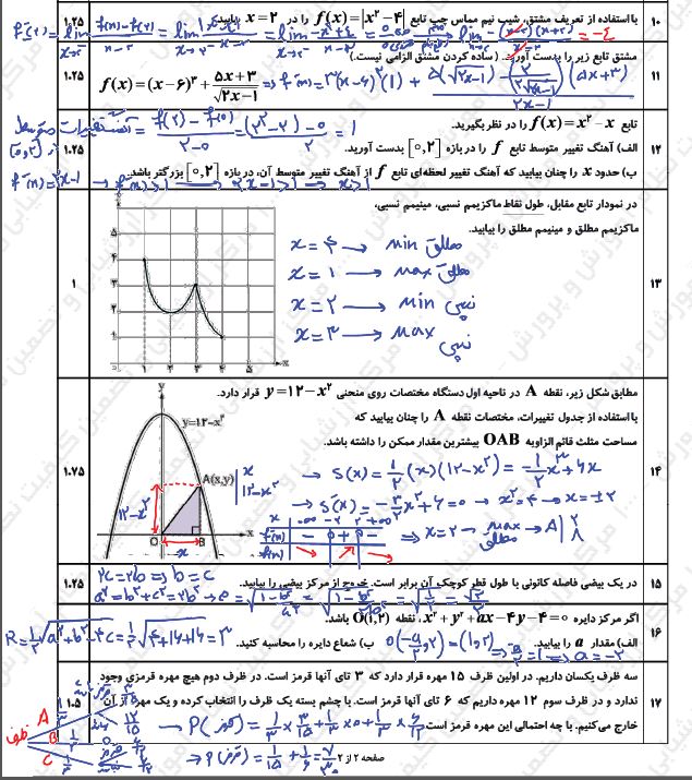 پاسخ امتحان نهایی ریاضی ریاضی ۳ به صورت کتبی و فیلم حل سوالات در این مطلب آمده است.