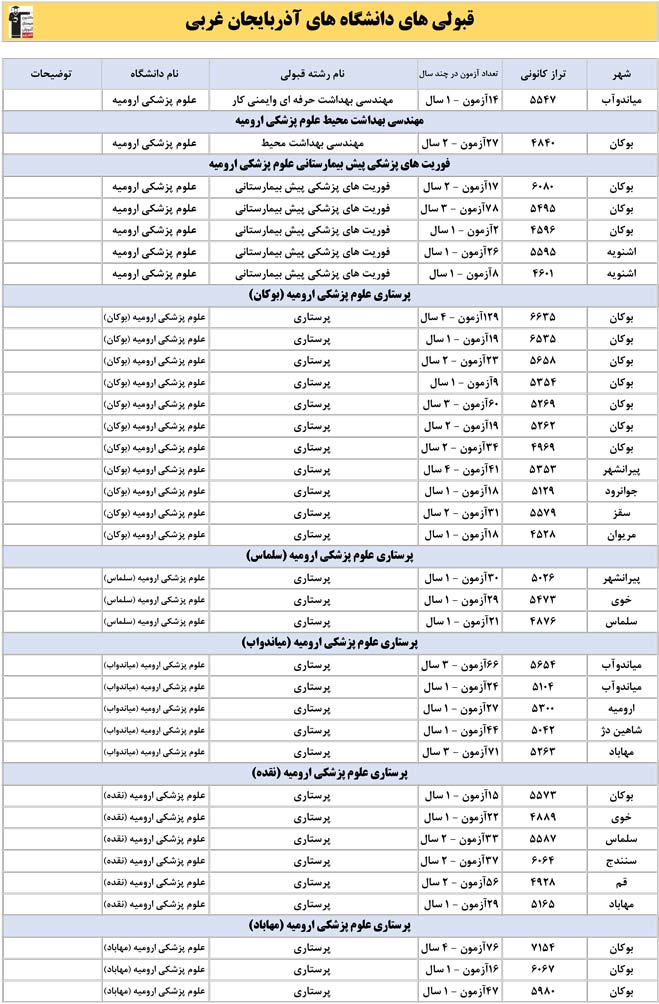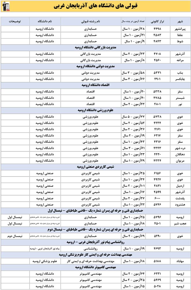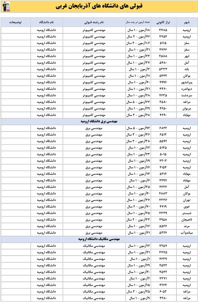 اطلاعات مربوط به تراز قبولی ها در این دانشگاه ها به پیوست می باشد.