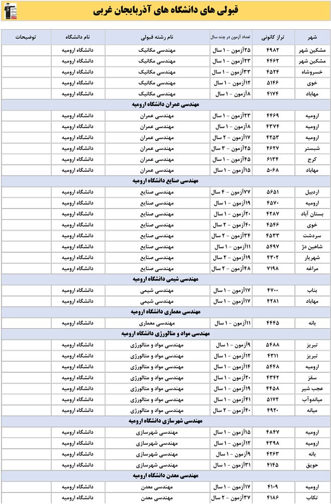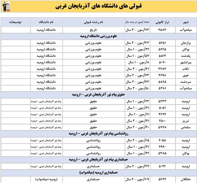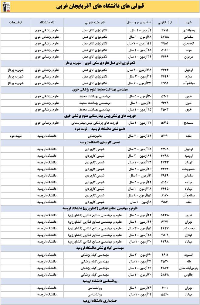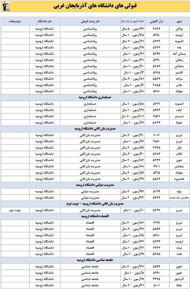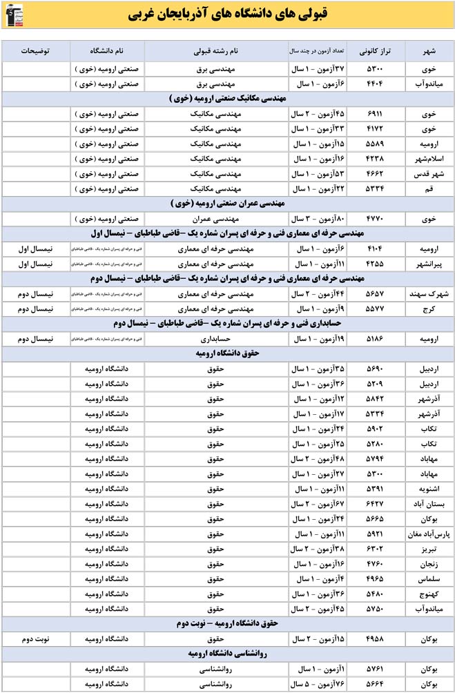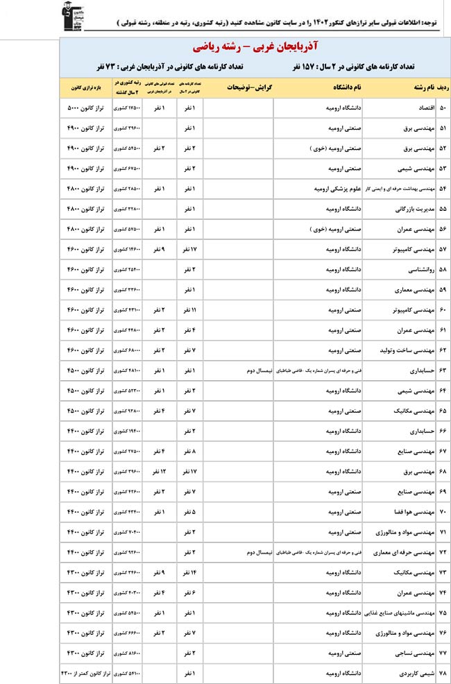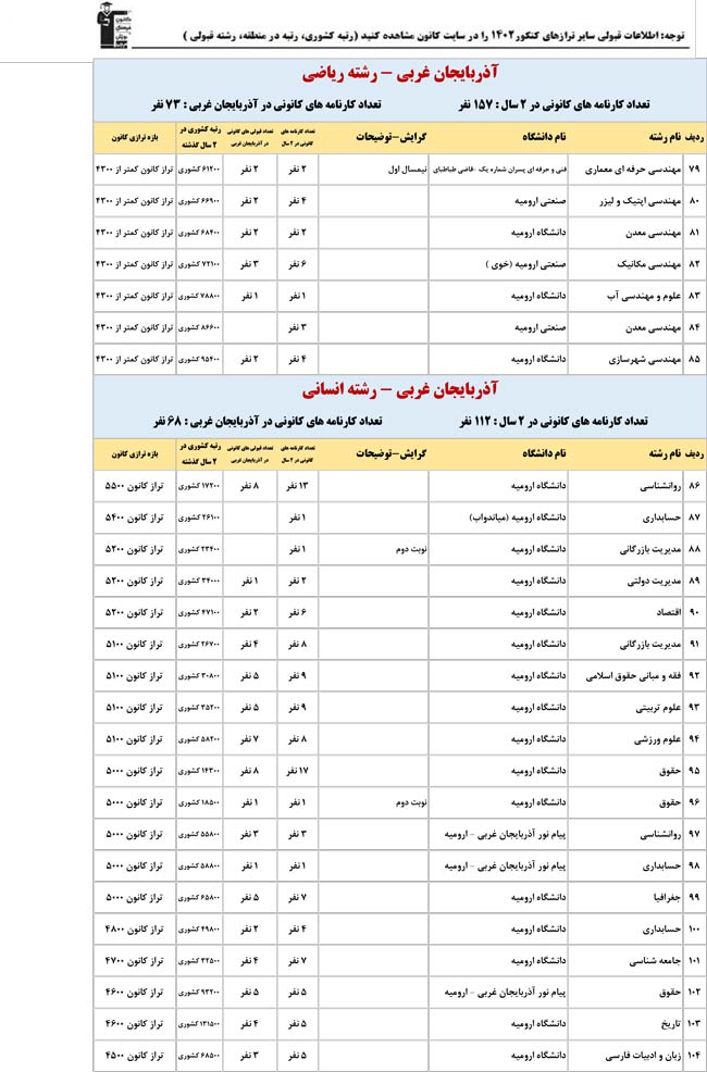 این آمار و اطلاعات مربوط به رشته های دانشگاه های استان آذربایجان شرقی و دانش آموزان دو سال قبل کانون(کنکور1401 و 1402) می باشد .شما می توانید نمره ی تراز خود را پیدا کنید و متوجه شوید ، آن ها که پارسال ترازشان مثل شما بوده چه رشته هایی قبول شدند.