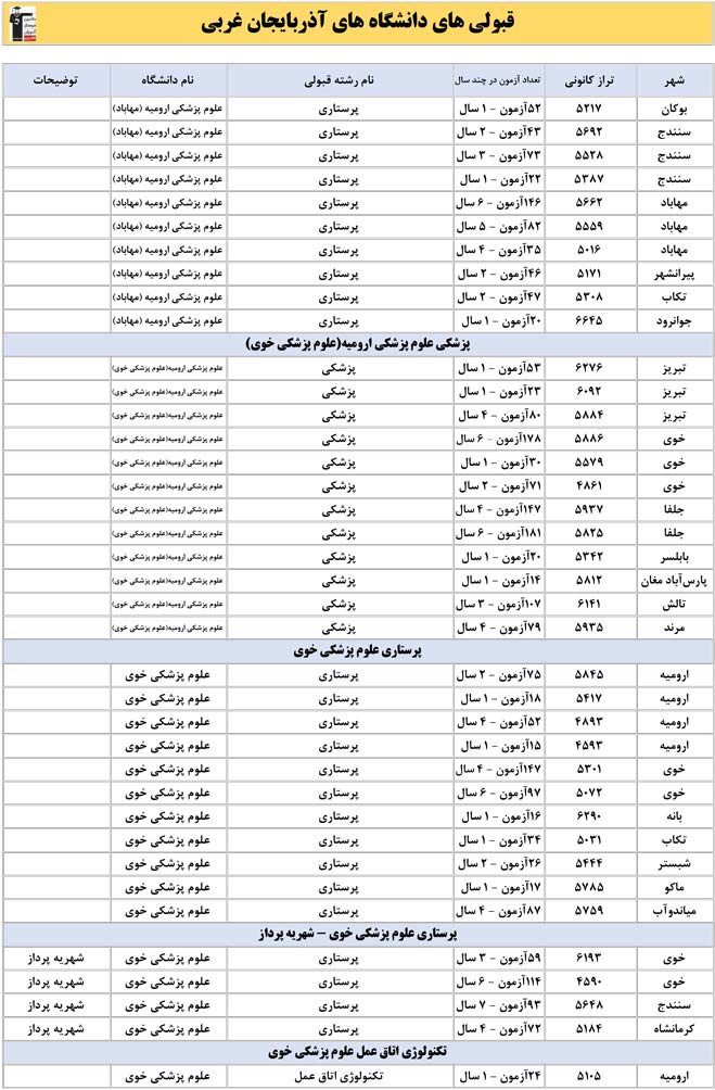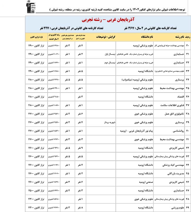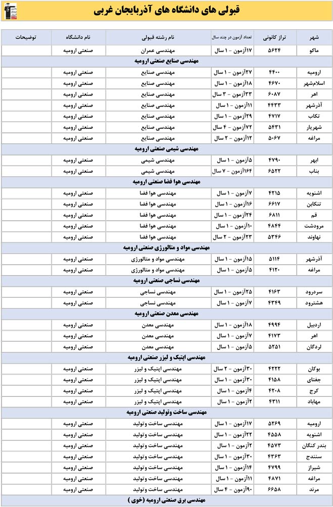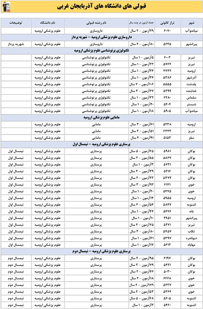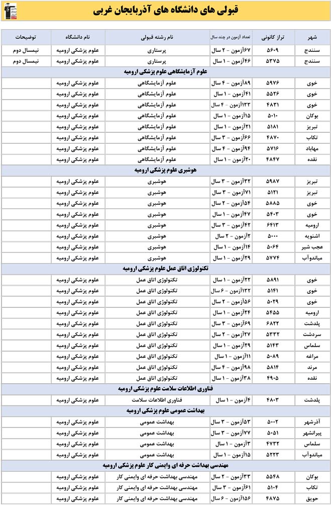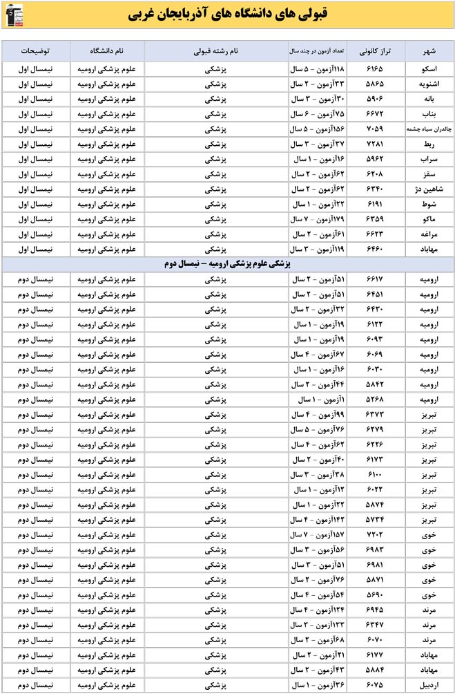 این آمار و اطلاعات مربوط به رشته های دانشگاه های استان آذربایجان شرقی و دانش آموزان دو سال قبل کانون(کنکور1401 و 1402) می باشد .شما می توانید نمره ی تراز خود را پیدا کنید و متوجه شوید ، آن ها که پارسال ترازشان مثل شما بوده چه رشته هایی قبول شدند.