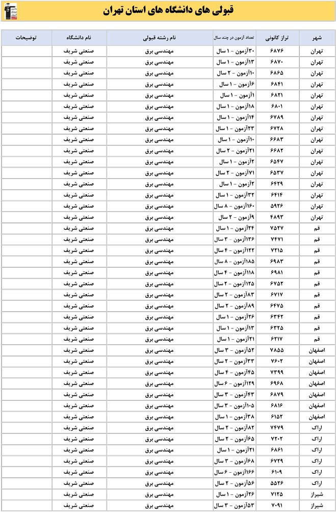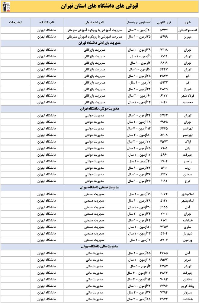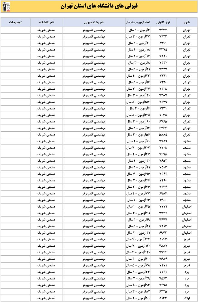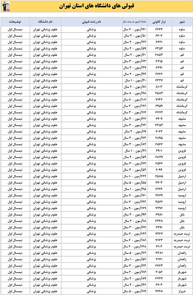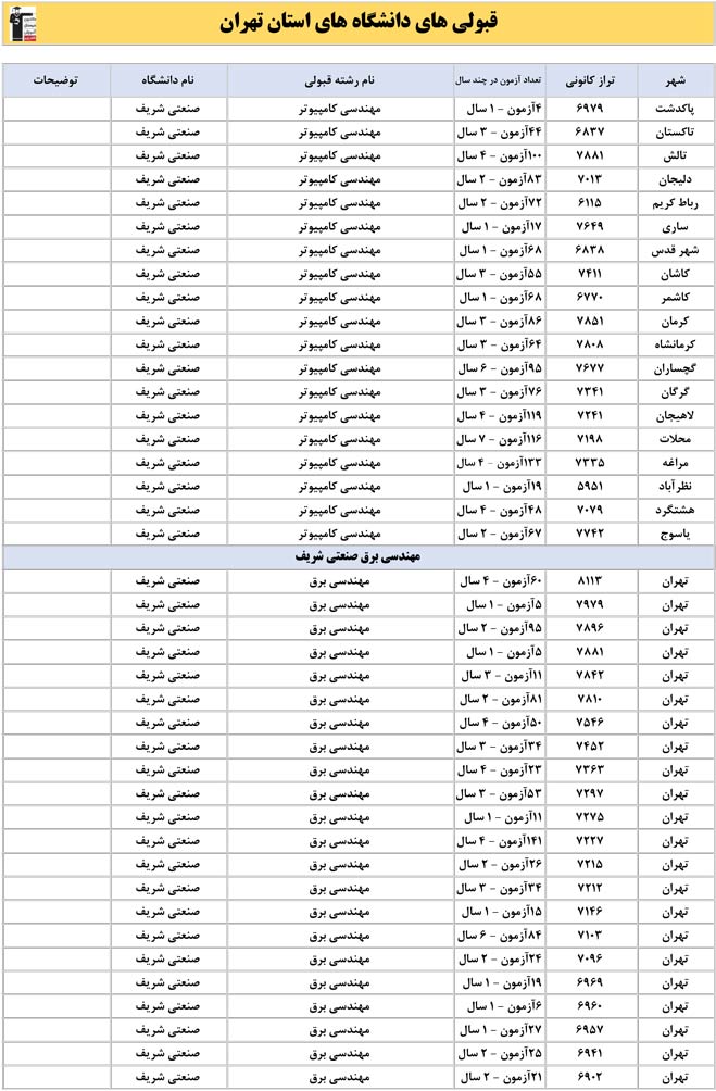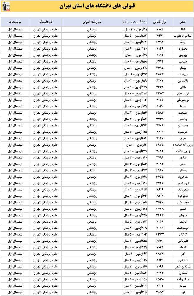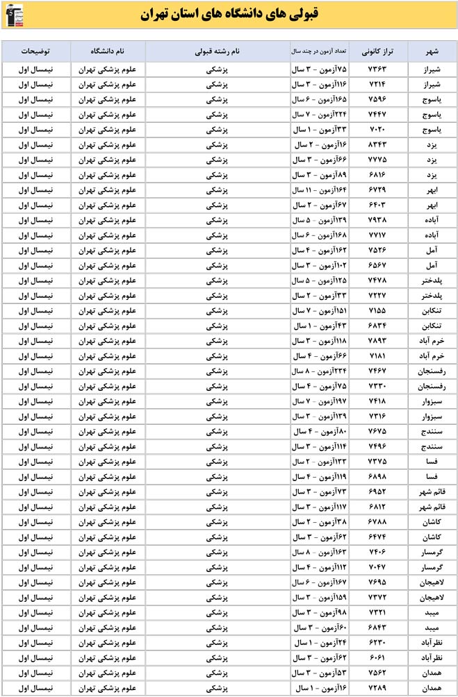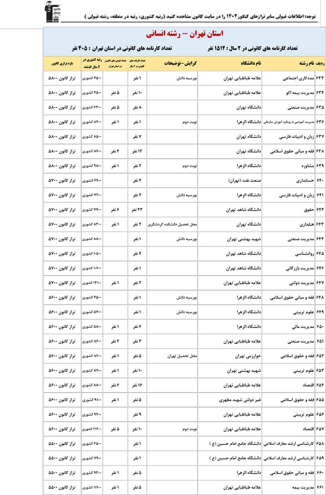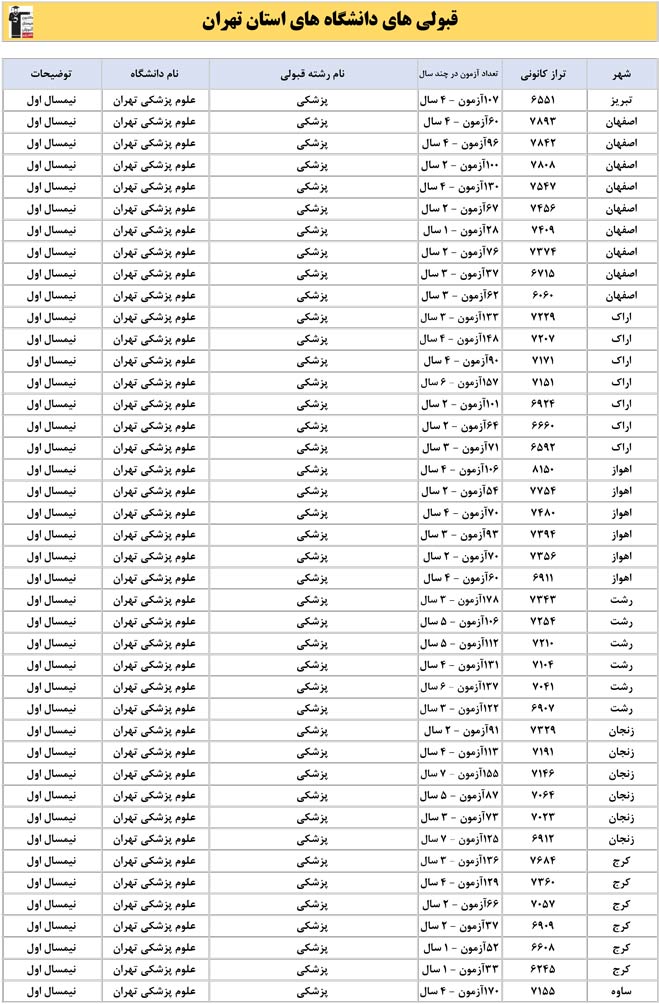 این آمار و اطلاعات مربوط به رشته های دانشگاه های استان تهران و دانش آموزان دو سال قبل کانون(کنکور1401 و 1402) می باشد .شما می توانید نمره ی تراز خود را پیدا کنید و متوجه شوید ، آن ها که پارسال ترازشان مثل شما بوده چه رشته هایی قبول شدند.