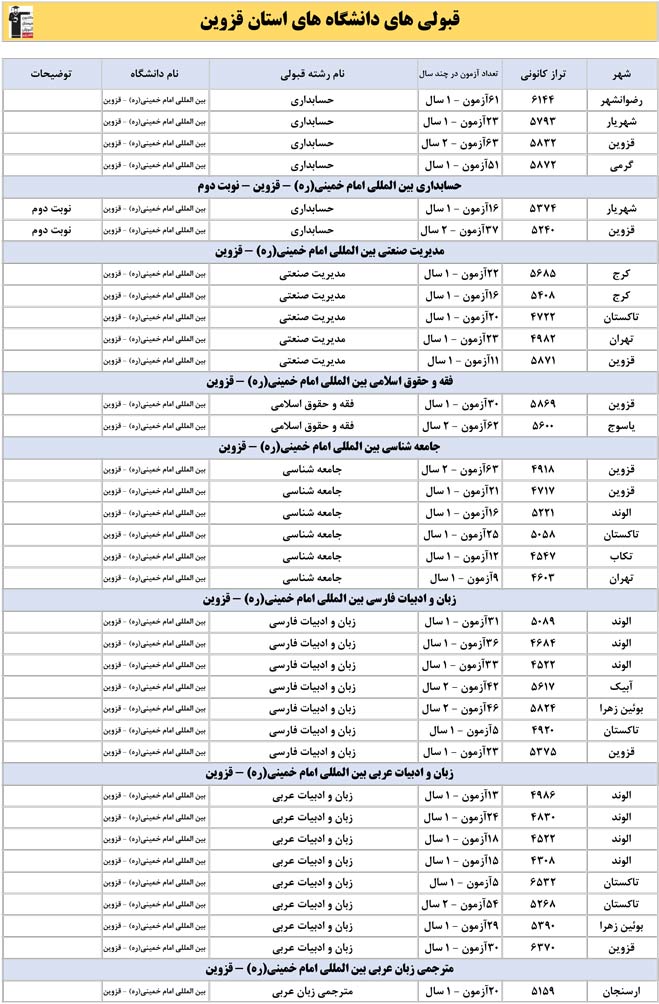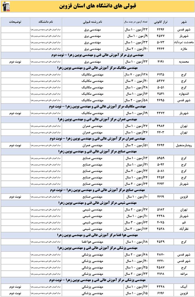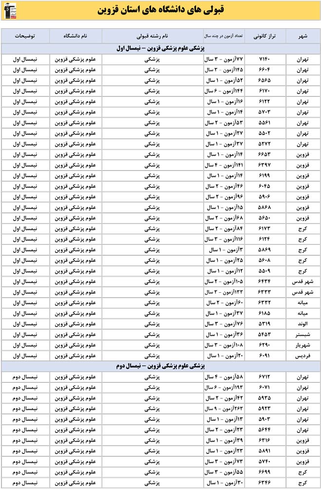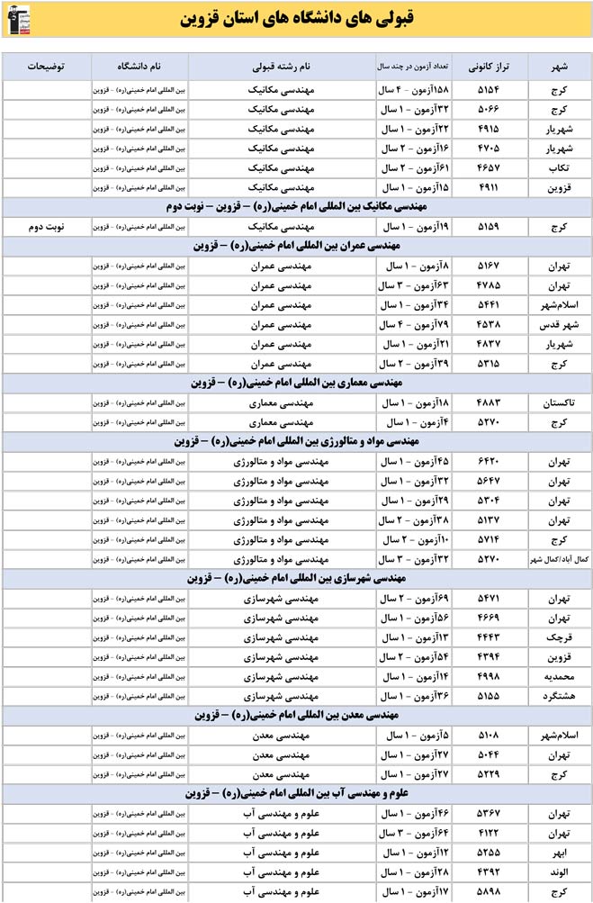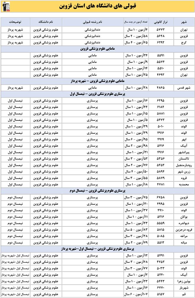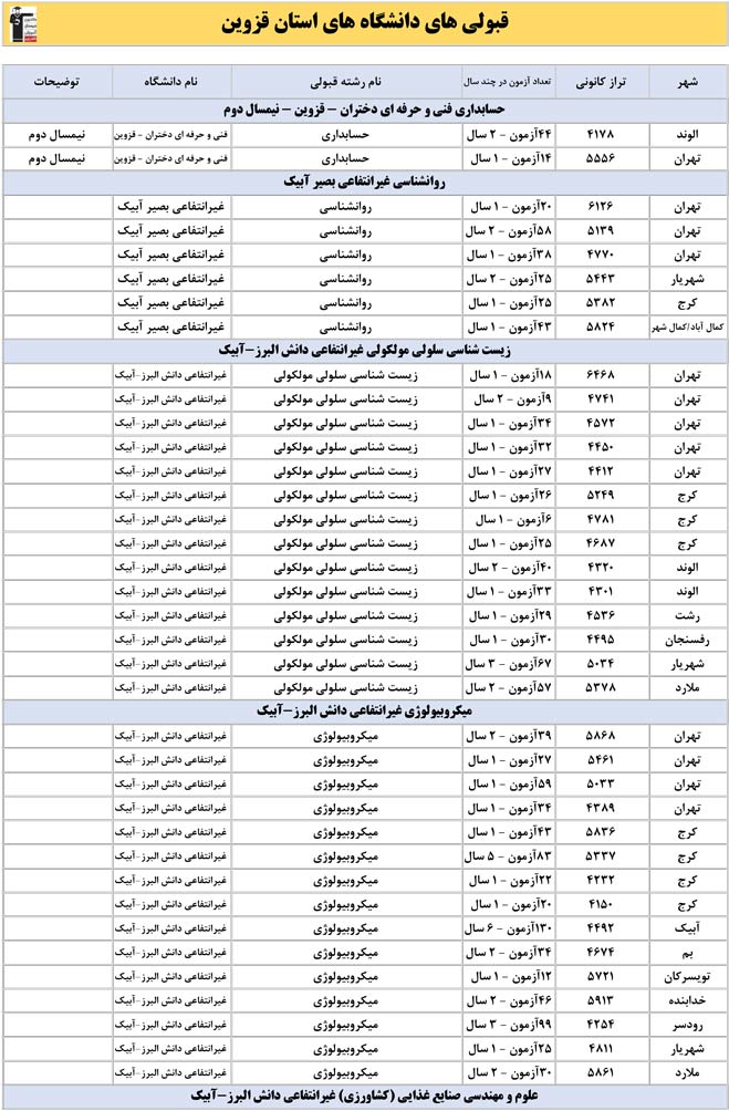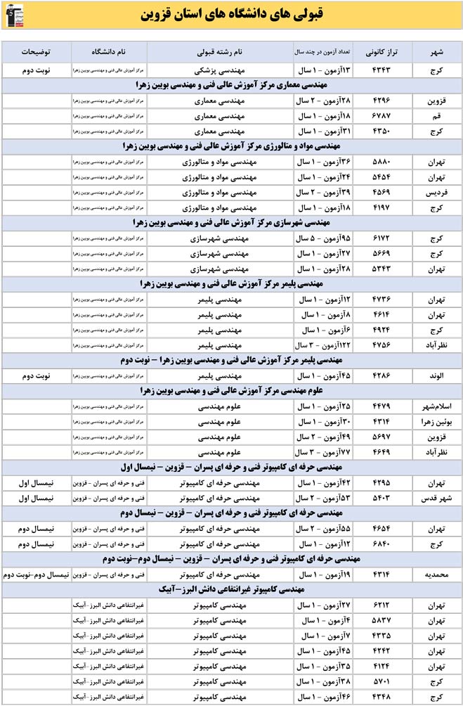 این آمار و اطلاعات مربوط به رشته های دانشگاه های استان قزوین و دانش آموزان دو سال قبل کانون(کنکور1401 و 1402) می باشد .شما می توانید نمره ی تراز خود را پیدا کنید و متوجه شوید ، آن ها که پارسال ترازشان مثل شما بوده چه رشته هایی قبول شدند.