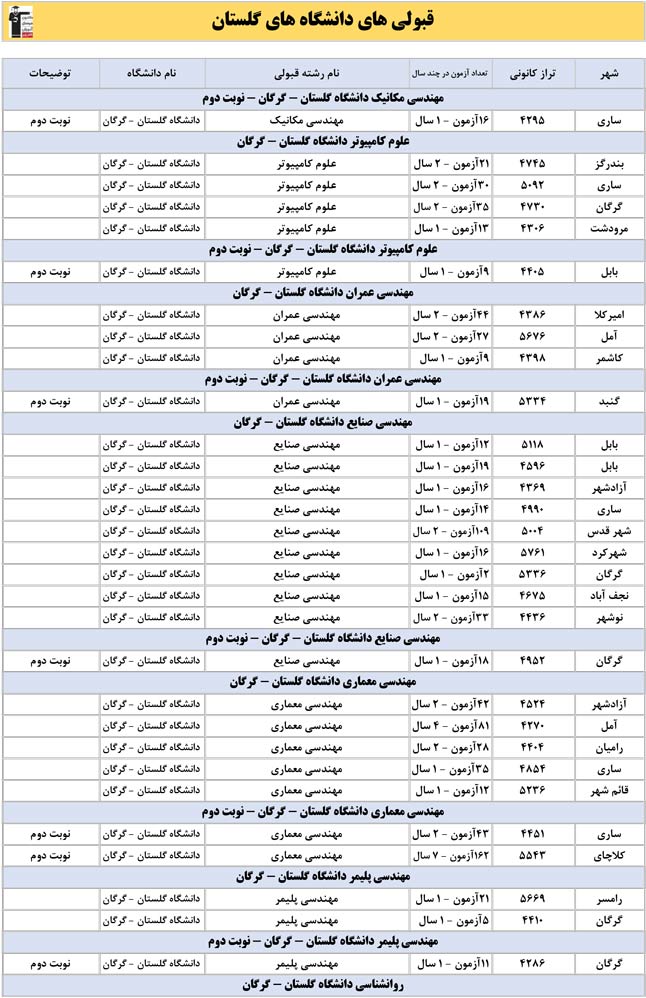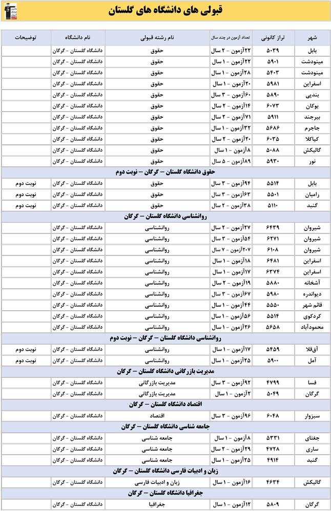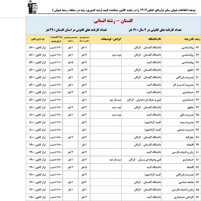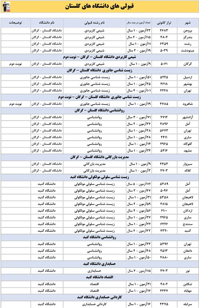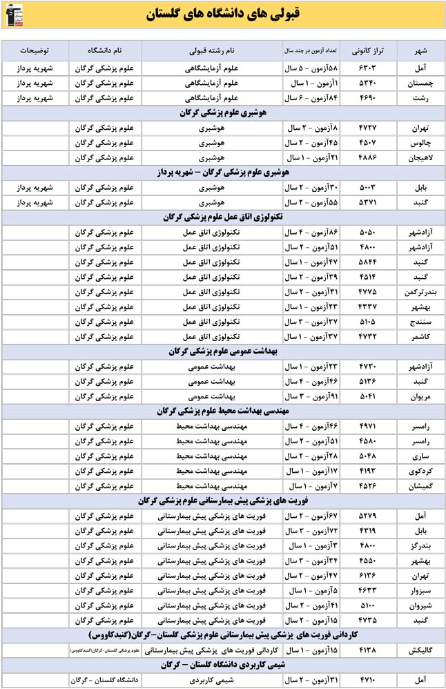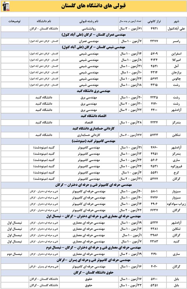 این آمار و اطلاعات مربوط به رشته های دانشگاه های استان گیلان و دانش آموزان دو سال قبل کانون(کنکور1401 و 1402) می باشد .شما می توانید نمره ی تراز خود را پیدا کنید و متوجه شوید ، آن ها که پارسال ترازشان مثل شما بوده چه رشته هایی قبول شدند.