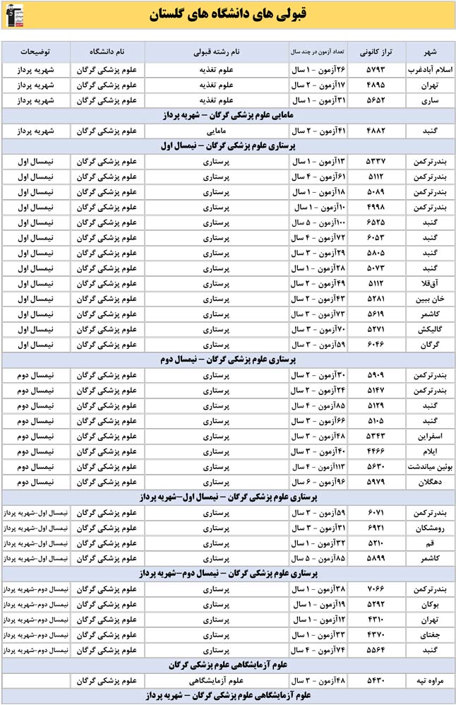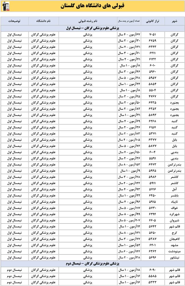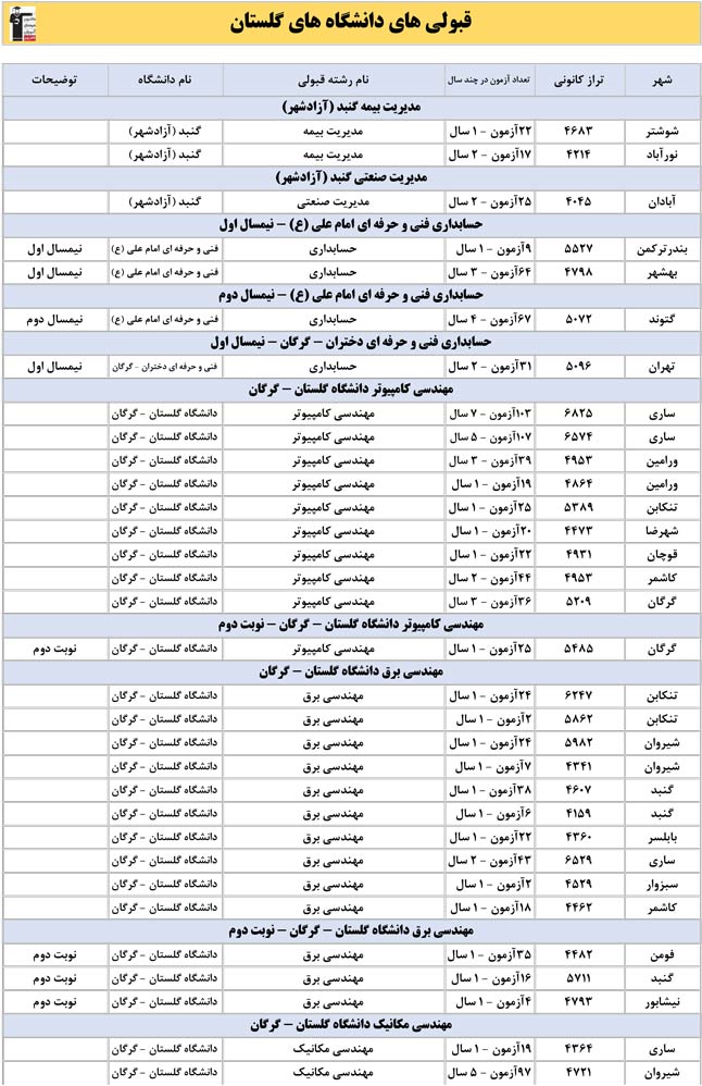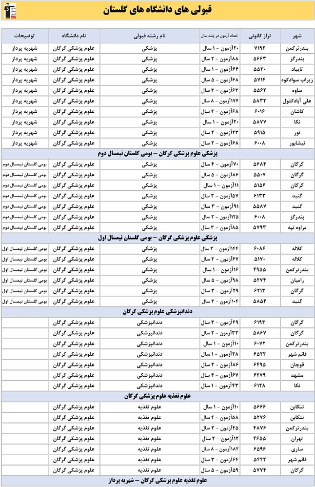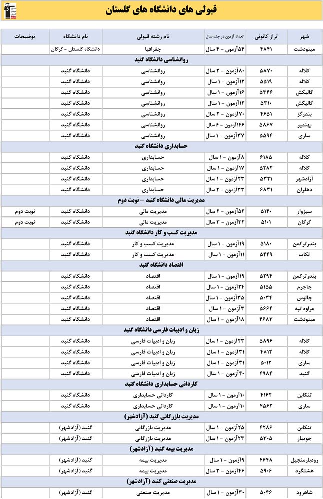 این آمار و اطلاعات مربوط به رشته های دانشگاه های استان گیلان و دانش آموزان دو سال قبل کانون(کنکور1401 و 1402) می باشد .شما می توانید نمره ی تراز خود را پیدا کنید و متوجه شوید ، آن ها که پارسال ترازشان مثل شما بوده چه رشته هایی قبول شدند.