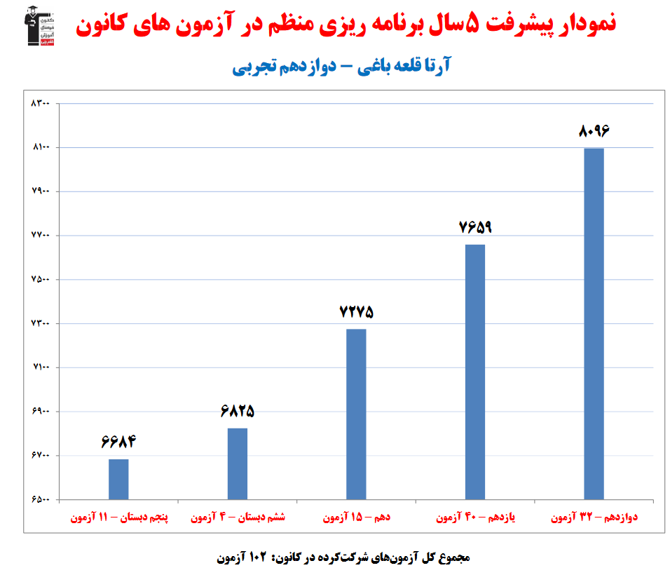آرتا قلعه باغی، قهرمان پیوستگی، نمودار پیشرفت در 5سال، 102آزمون