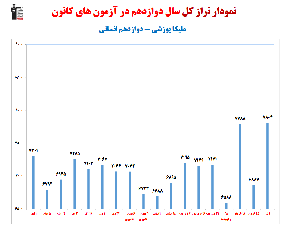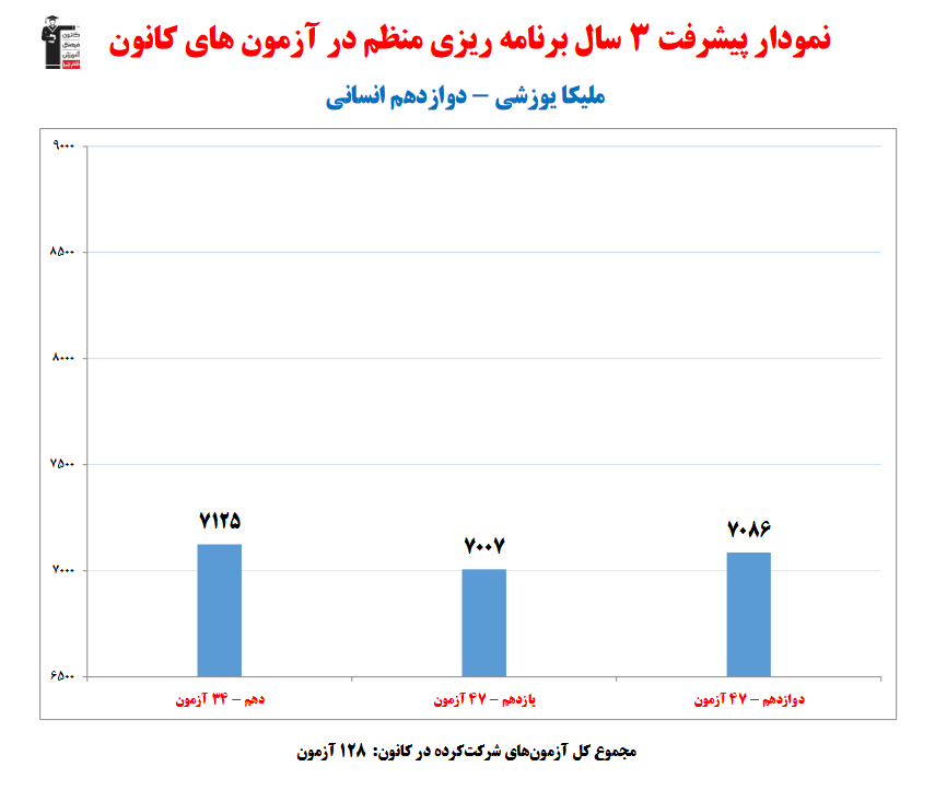از سال دهم 6700به 7800 رسیدم اجرای دقیق برنامه کانون و زدن تستهای زیاد و استفاده از کتابهای آبی کانون باعث پیشرفت ترازم در آزمونهای کانون شد.