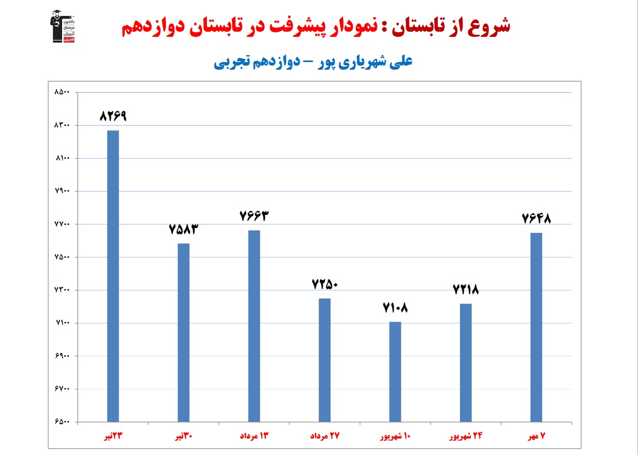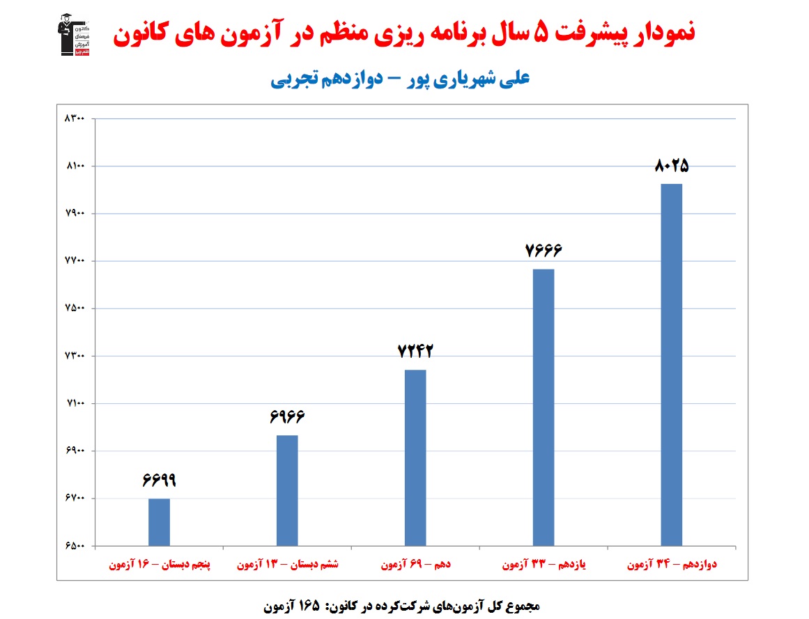 علی شهریاری پور، نمودار پیشرفت در 5 سال، 3378 پاسخ صحیح، علی شهریاری پور، نمودار پیشرفت در 5 سال، 3378 پاسخ صحیح