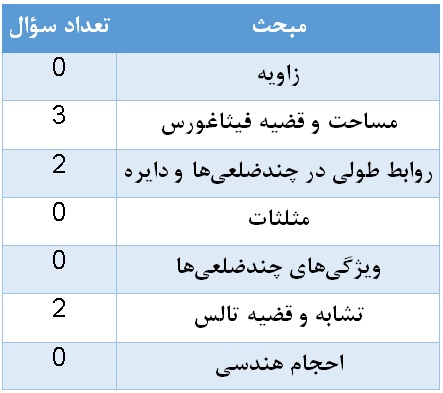 - کاهش سهم سؤالات هندسه نسبت به سنوات گذشته