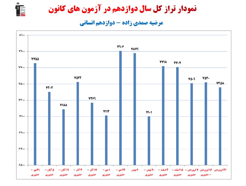 مرضیه صمدی؛ نمودار پیشرفت 1 سال، 28 آزمون و 2815 پاسخ صحیح