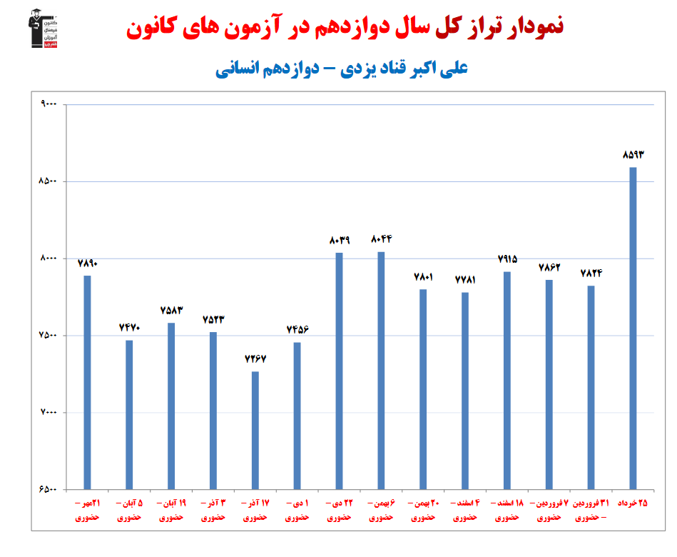 علیاکبر قناد یزدی؛ نمودار پیشرفت در 2 سال؛ 2104 پاسخ صحیح دوازدهم انسانی