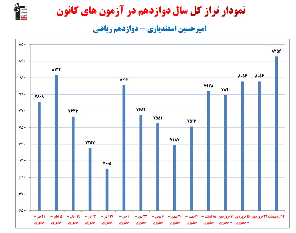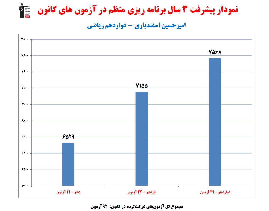 امیرحسین اسفندیاری؛ نمودار پیشرفت در 3سال، 92 آزمون