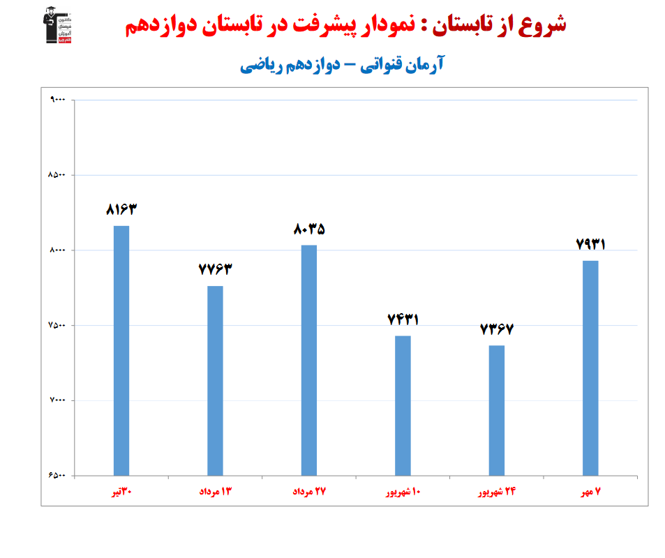 نمودار پیشرفت درسی آرمان قنواتی ، برتر ریاضی با 2600پاسخ صحیح
