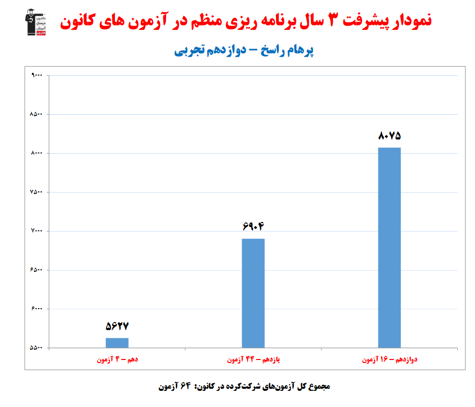 پرهام راسخ؛ نمودار پیشرفت در 3سال، 1493پاسخ صحیح
