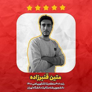 ![]() | متین قنبرزاده رتبهی 408 منطقه یک دانشجوی رشتهی مکانیک دانشگاه تهران |