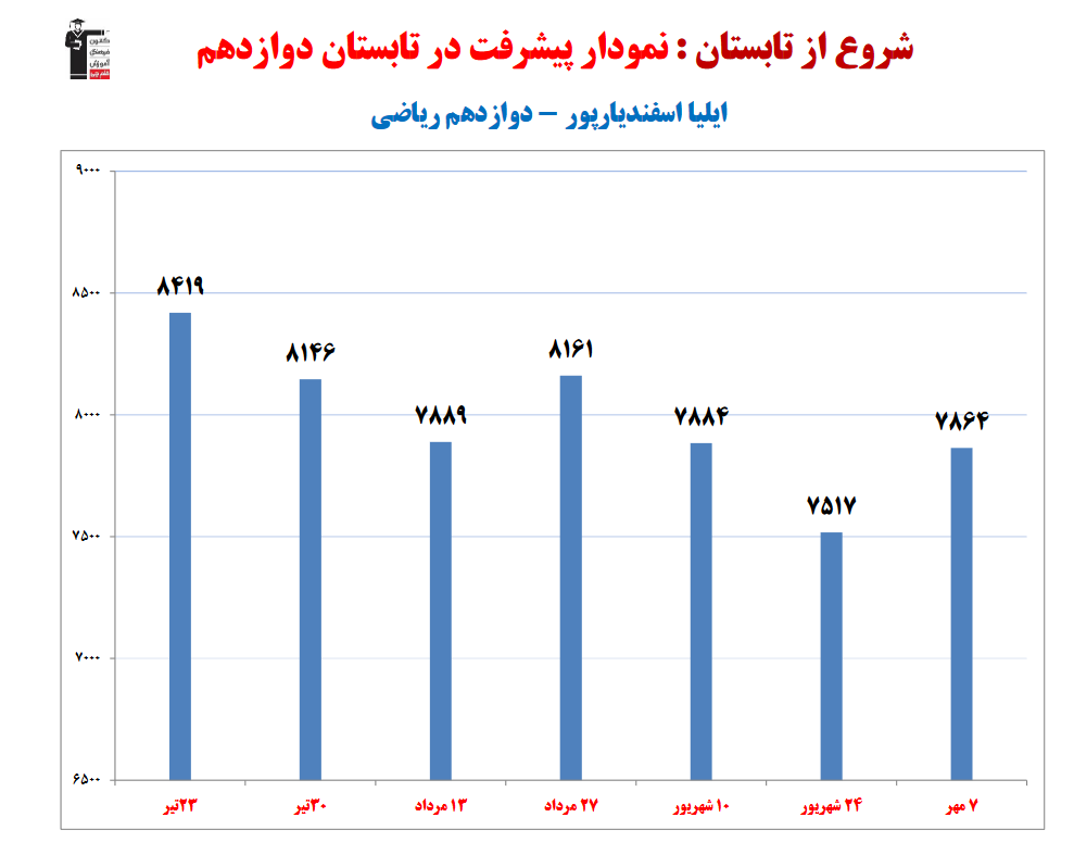ایلیا اسفندیارپور؛ نمودار پیشرفت در 7سال، 2532پاسخ صحیح
