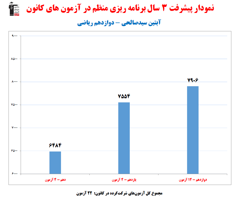 آبتین سید صالحی؛ نمودار پیشرفت در 3 سال،1284 پاسخ صحیح