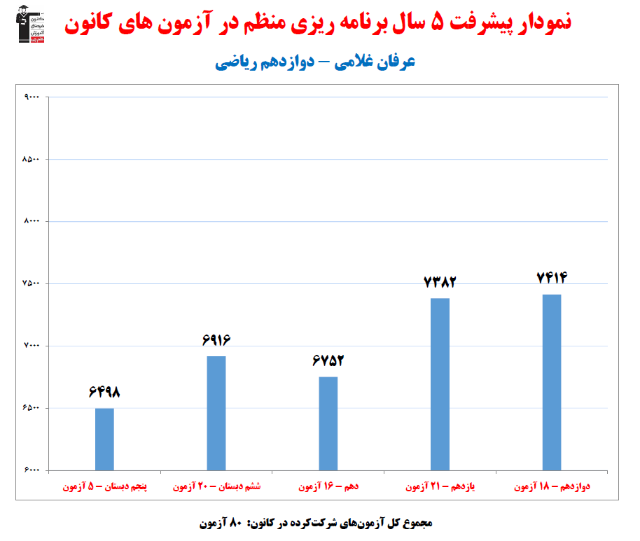 عرفان غلامی؛ نمودار پیشرفت در 5 سال،1206 پاسخ صحیح