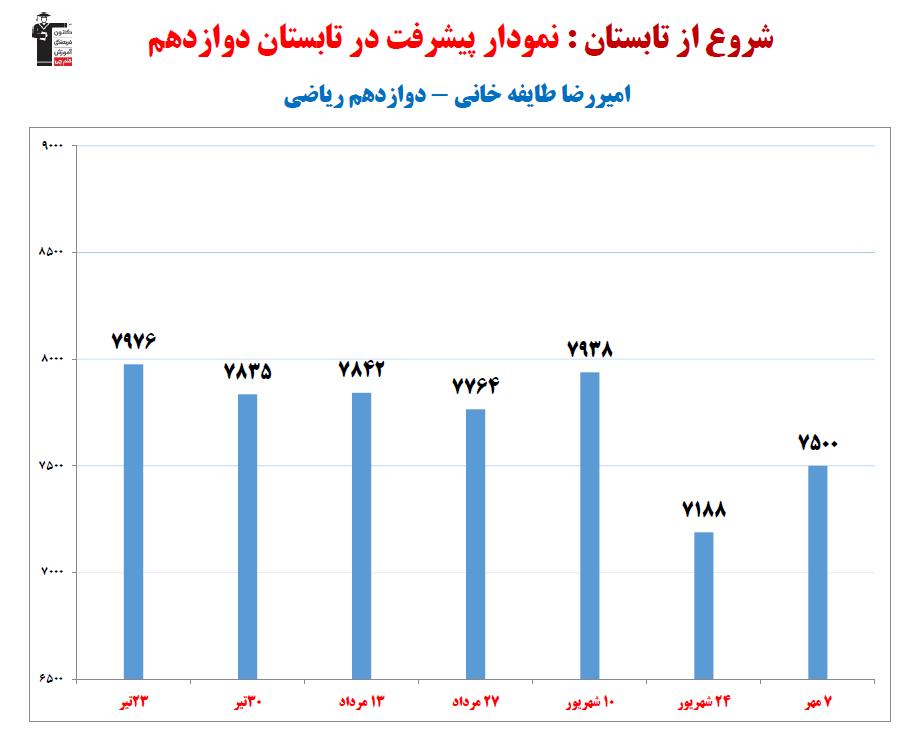 امیررضا طایفه خانی؛ نمودار پیشرفت در 2 سال، 1800 پاسخ صحیح