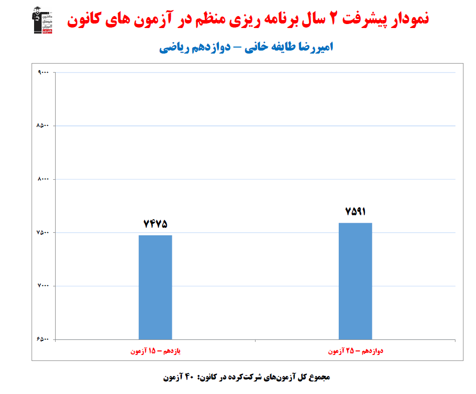 امیررضا طایفه خانی؛ نمودار پیشرفت در 2 سال،1800 پاسخ صحیح