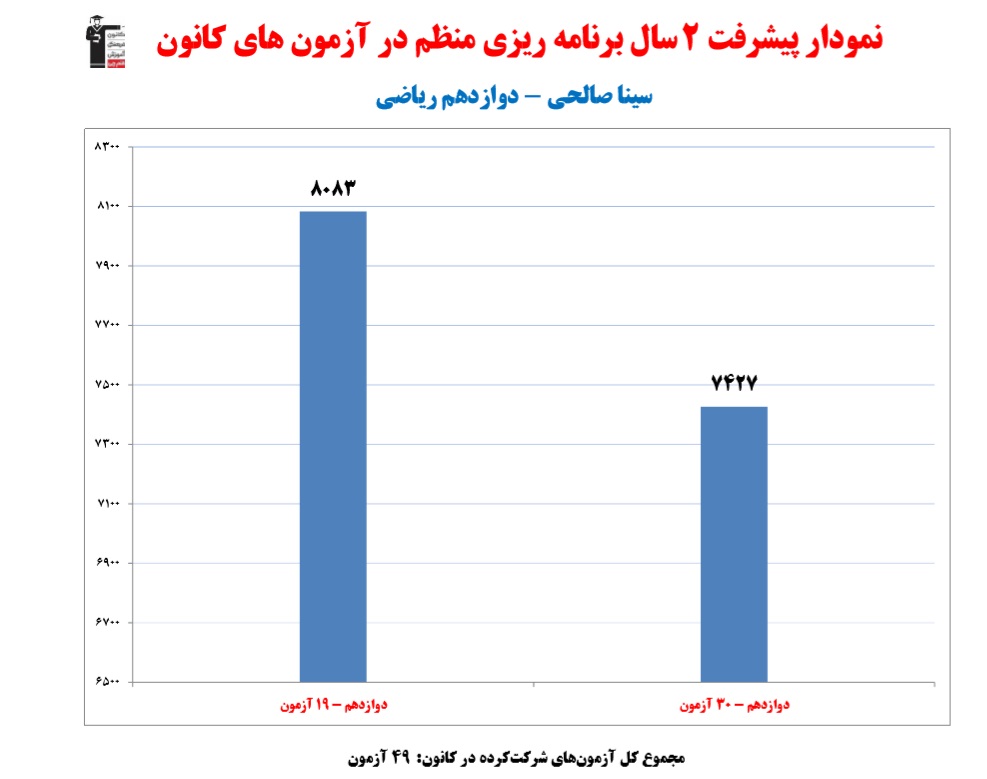نمودار سینا صالحی، قهرمان پیوستگیف نمودار پیشرفت در 2 سال، 49 آزمون را ببینید