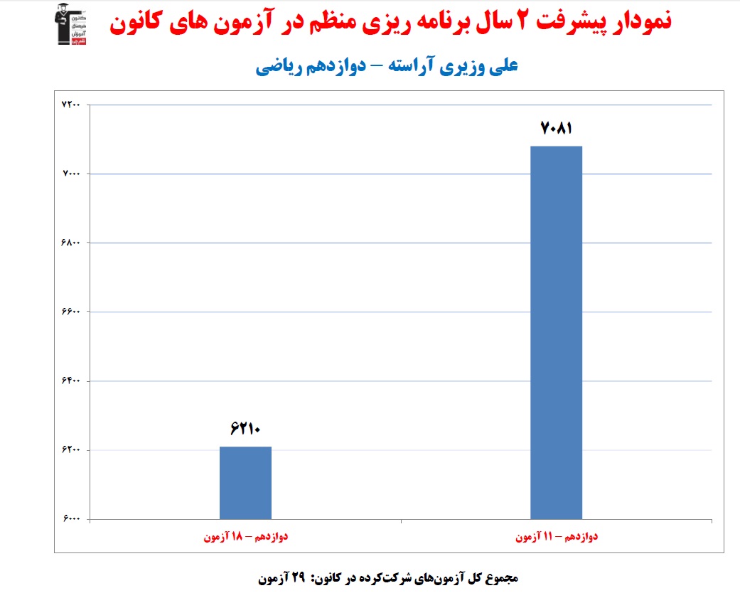 علی وزیری آراسته؛ نمودار پیشرفت در 2سال، 634 پاسخ صحیح، دوزادهم ریاضی