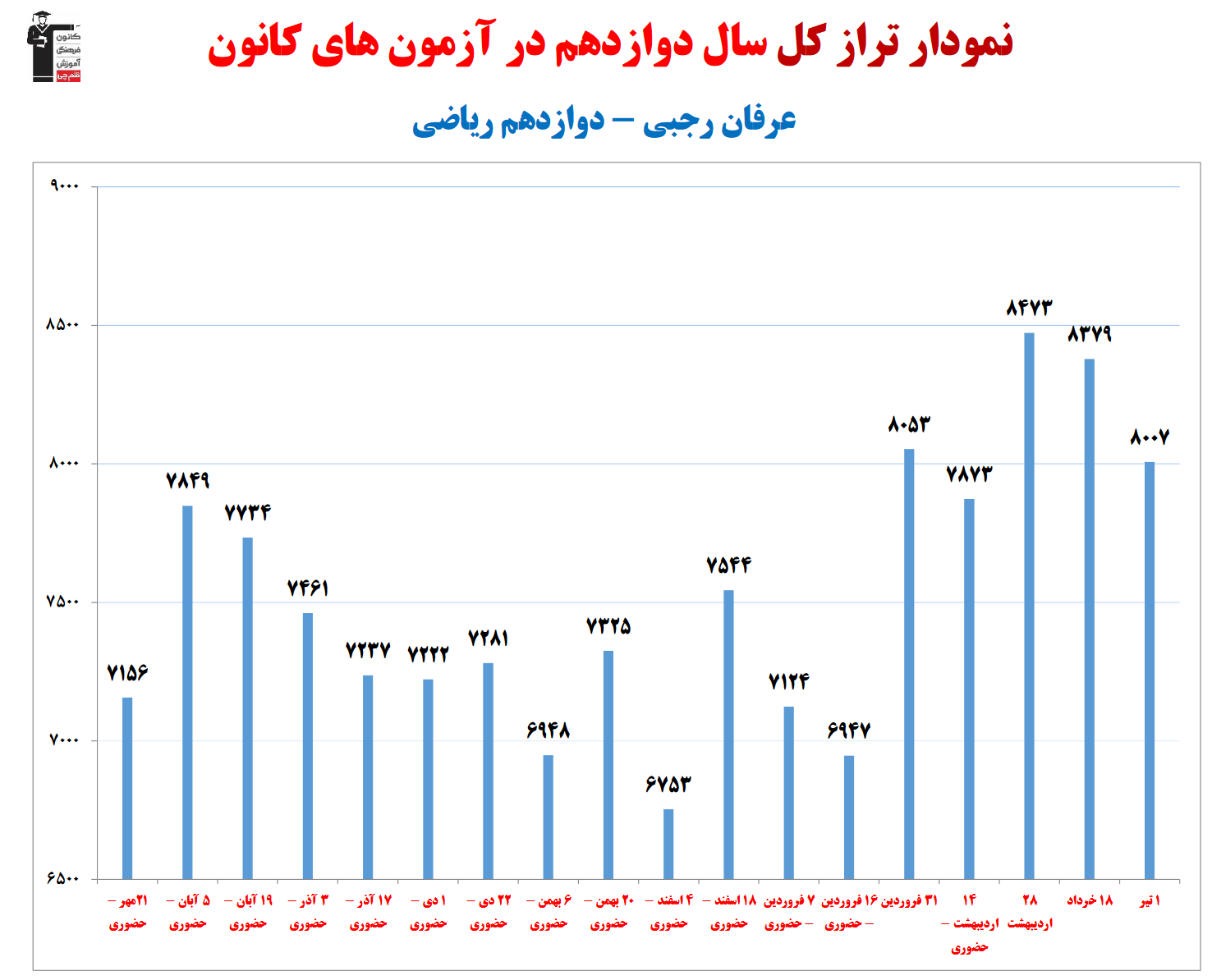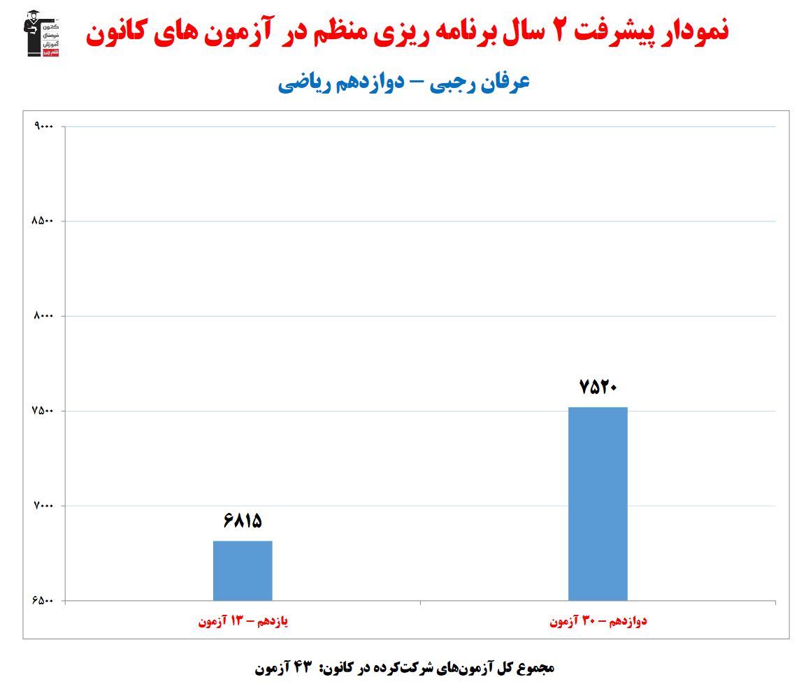 عرفان رجبی؛ نمودار پیشرفت در 2 سال، 2115 پاسخ صحیح