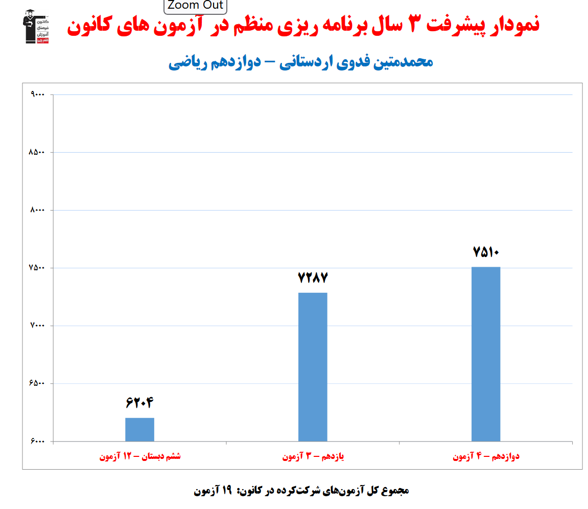 محمدمتین فدوی اردستانی؛ نمودار پیشرفت در 3 سال، 307 پاسخ صحیح
