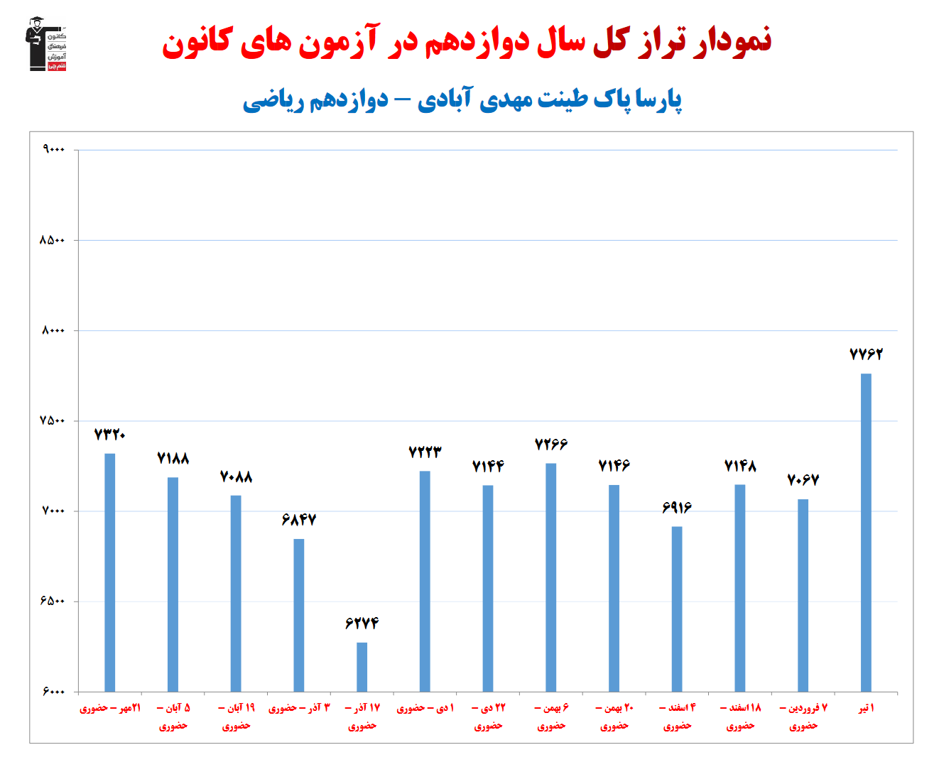 پارسا پاک طینت مهدی آبادی؛ نمودار پیشرفت در 3 سال،1350 پاسخ صحیح داشته است.