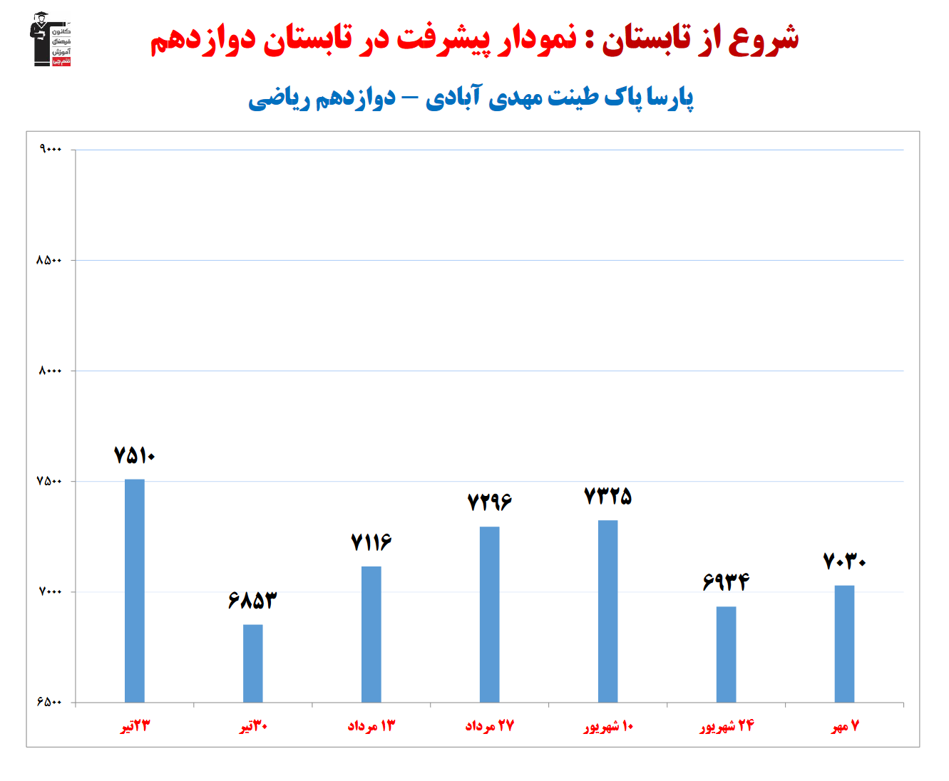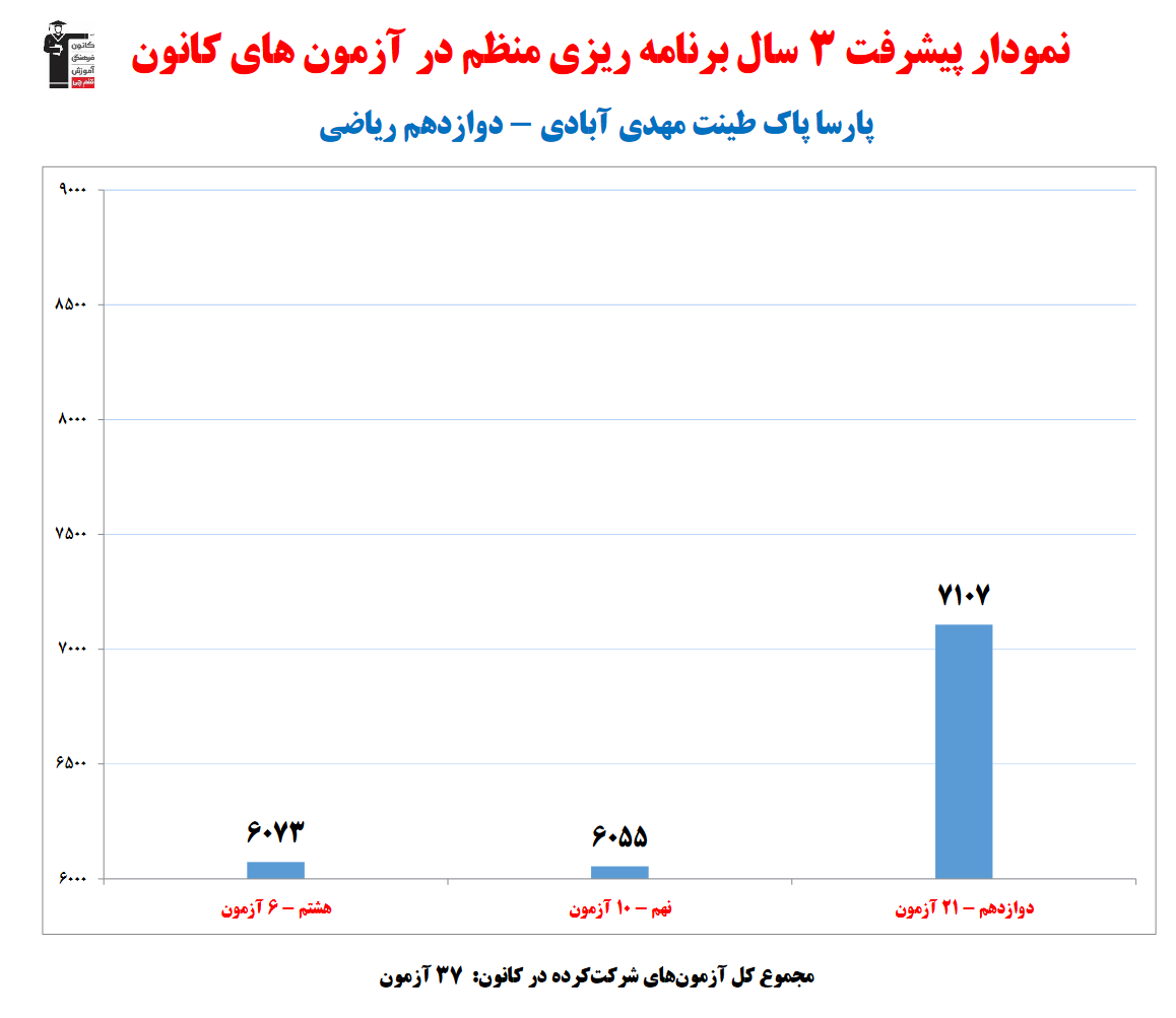 پارسا پاک طینت مهدی آبادی؛ نمودار پیشرفت در 3 سال،1350 پاسخ صحیح