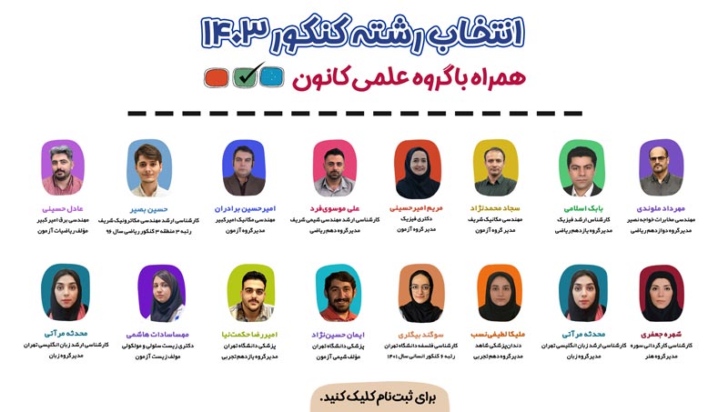 در این قسمت می توانید اطلاعات مفید برای انتخاب رشته که شامل آمار و اطلاعات قبولی های دانش آموزان کانون در کنکور 1402 و نرم افزارهای انتخاب رشته است را به صورت رایگان مشاهده کنید .
