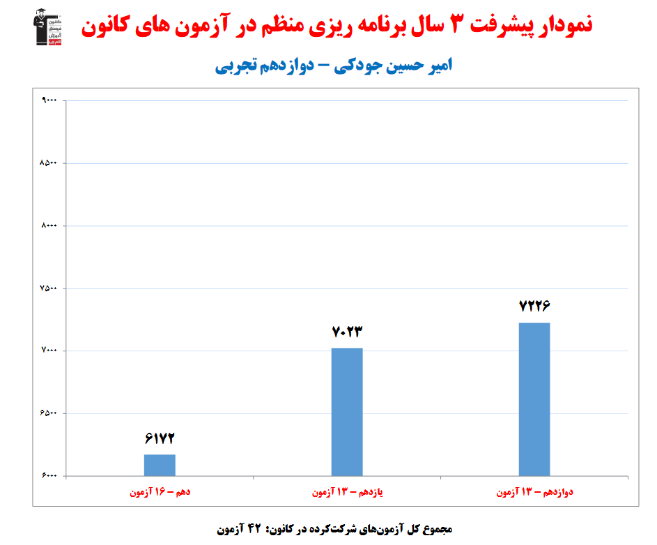 امیرحسین جودکی؛ نمودار پیشرفت در 3سال، 1348پاسخ صحیح از خرم آباد