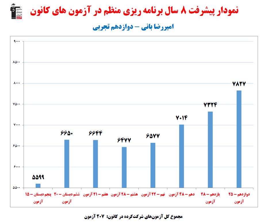 امیررضا بانی؛ نمودار پیشرفت در 8 سال،2873 پاسخ صحیح