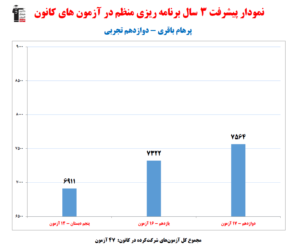 پرهام باقری؛ نمودار پیشرفت در 3 سال، 1994 پاسخ صحیح برتر تجربی
