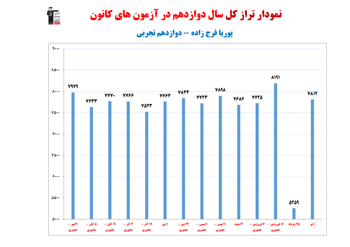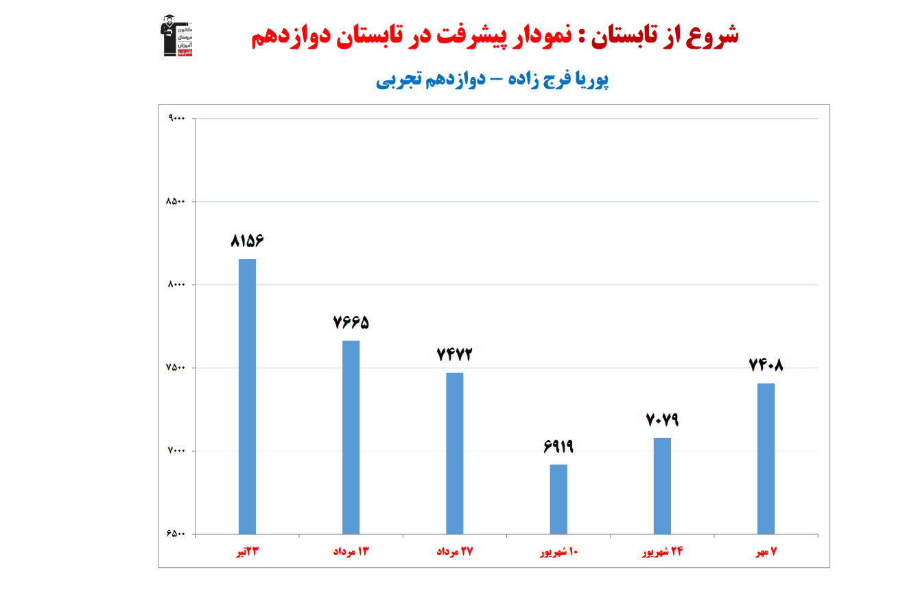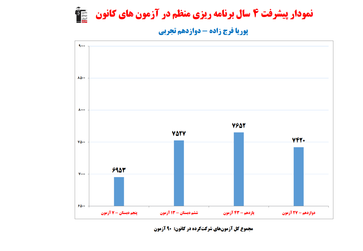 پوریا فرج زاده؛ نمودار پیشرفت در 4 سال،2857 پاسخ صحیح