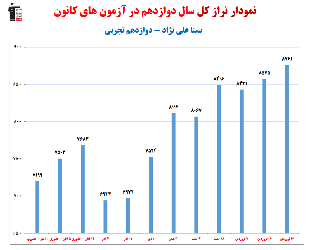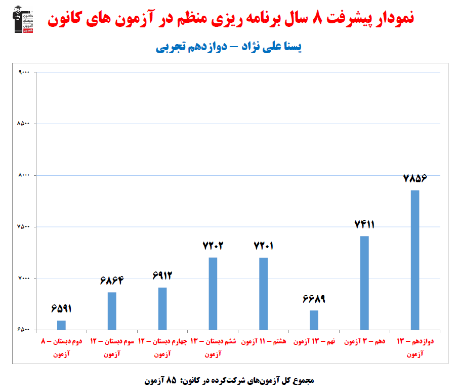 یسنا علی نژاد؛ نمودار پیشرفت در 8 سال،1652 پاسخ صحیح