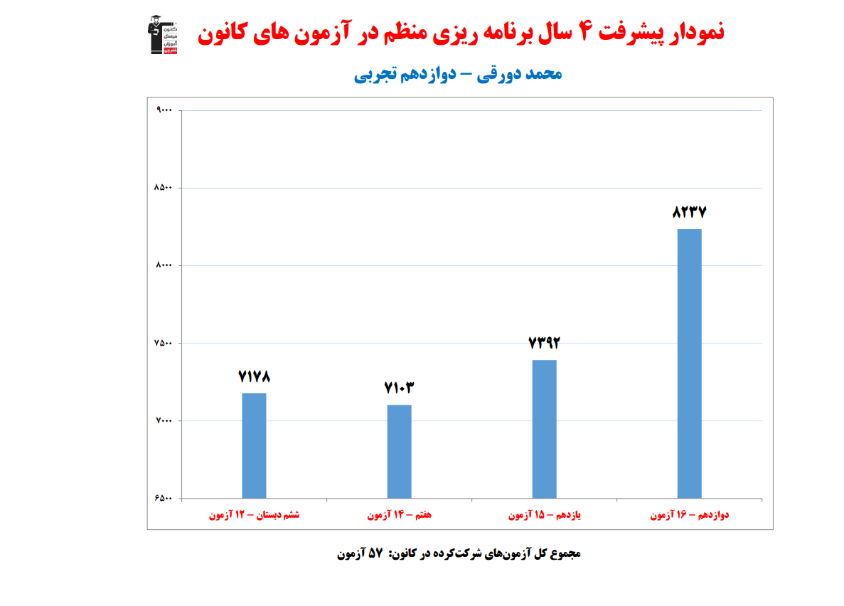 محمد دورقی؛ نمودار پیشرفت در 4 سال، 2086 پاسخ صحیح