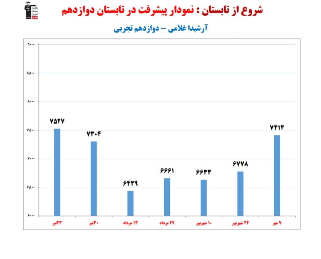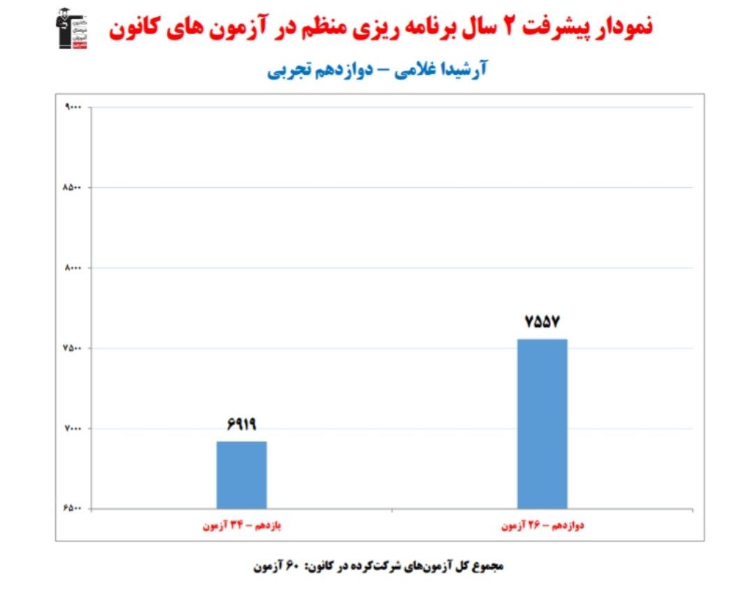آرشیدا غلامی؛ نمودار پیشرفت در 2 سال ، 2746 پاسخ صحیح