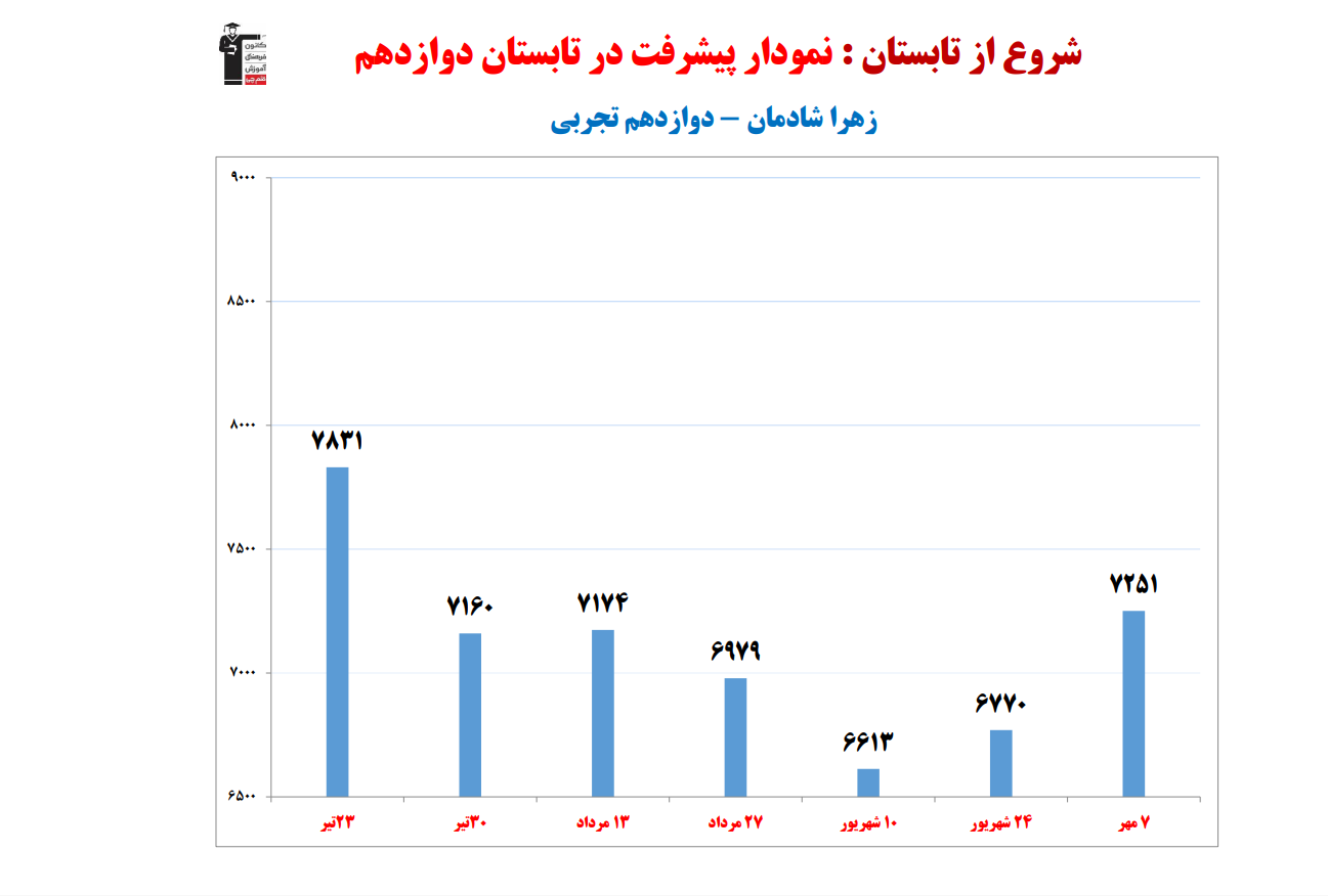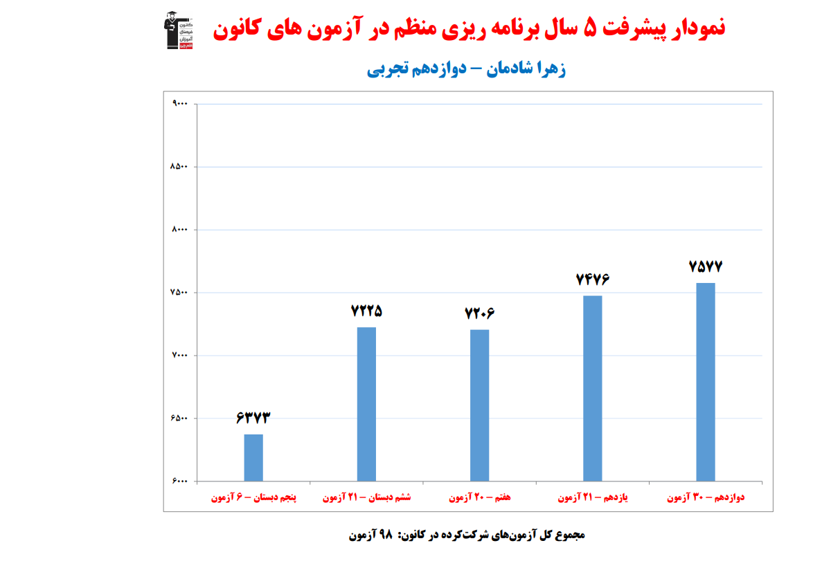 زهرا شادمان؛ نمودار پیشرفت در 5 سال، 3433 پاسخ صحیح