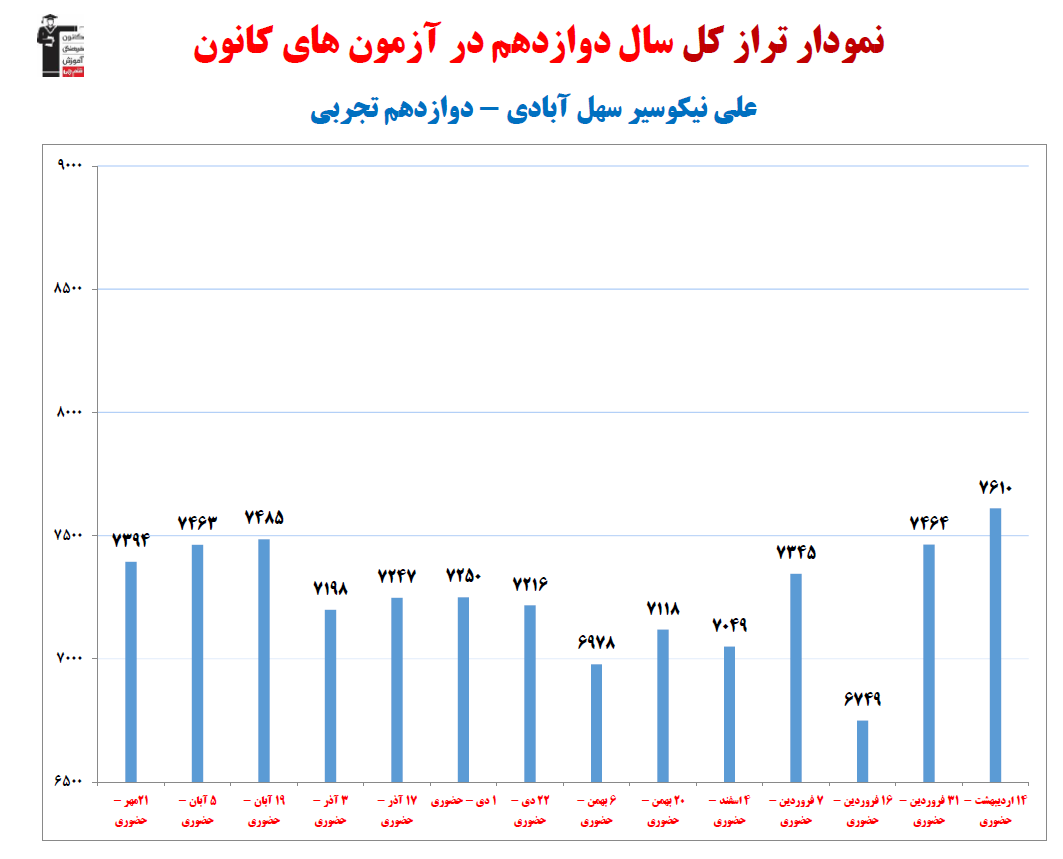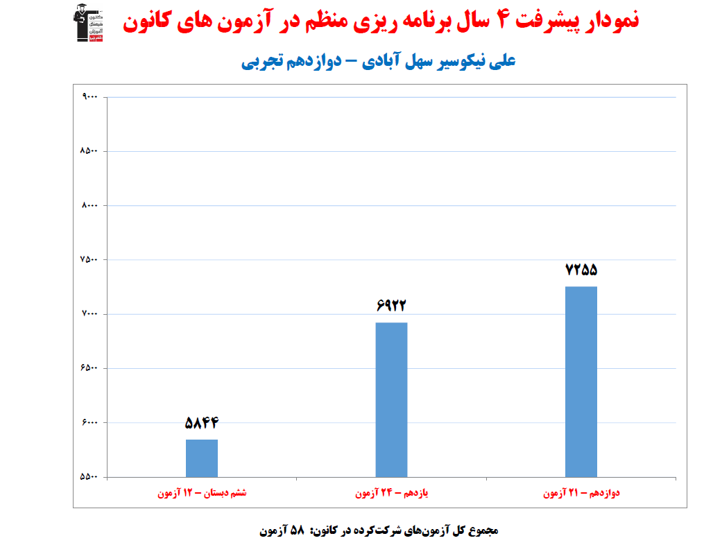 علی نیکوسیر سهل آبادی؛ نمودار پیشرفت در 4 سال، 2197 پاسخ صحیح برتر تجربی