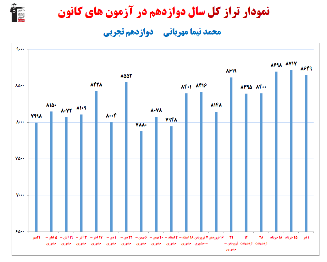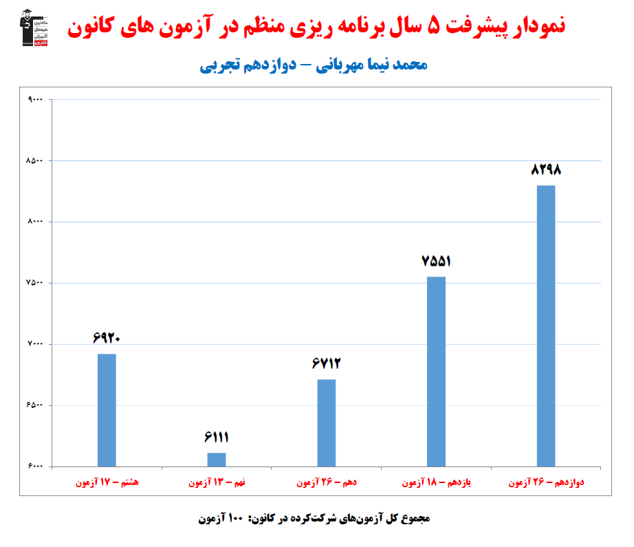 محمد نیما مهربانی؛ نمودار پیشرفت در 5 سال،3207 پاسخ صحیح