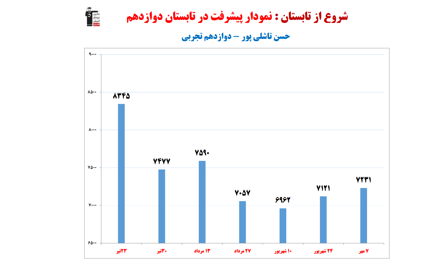 حسن تاشلی پور؛ نمودار پیشرفت در 2 سال، 1886پاسخ صحیح
