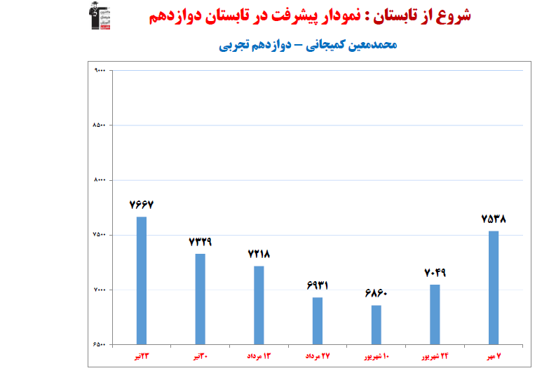 محمدمعین کمیجانی؛ نمودار پیشرفت در 1 سال، 3166 پاسخ صحیح